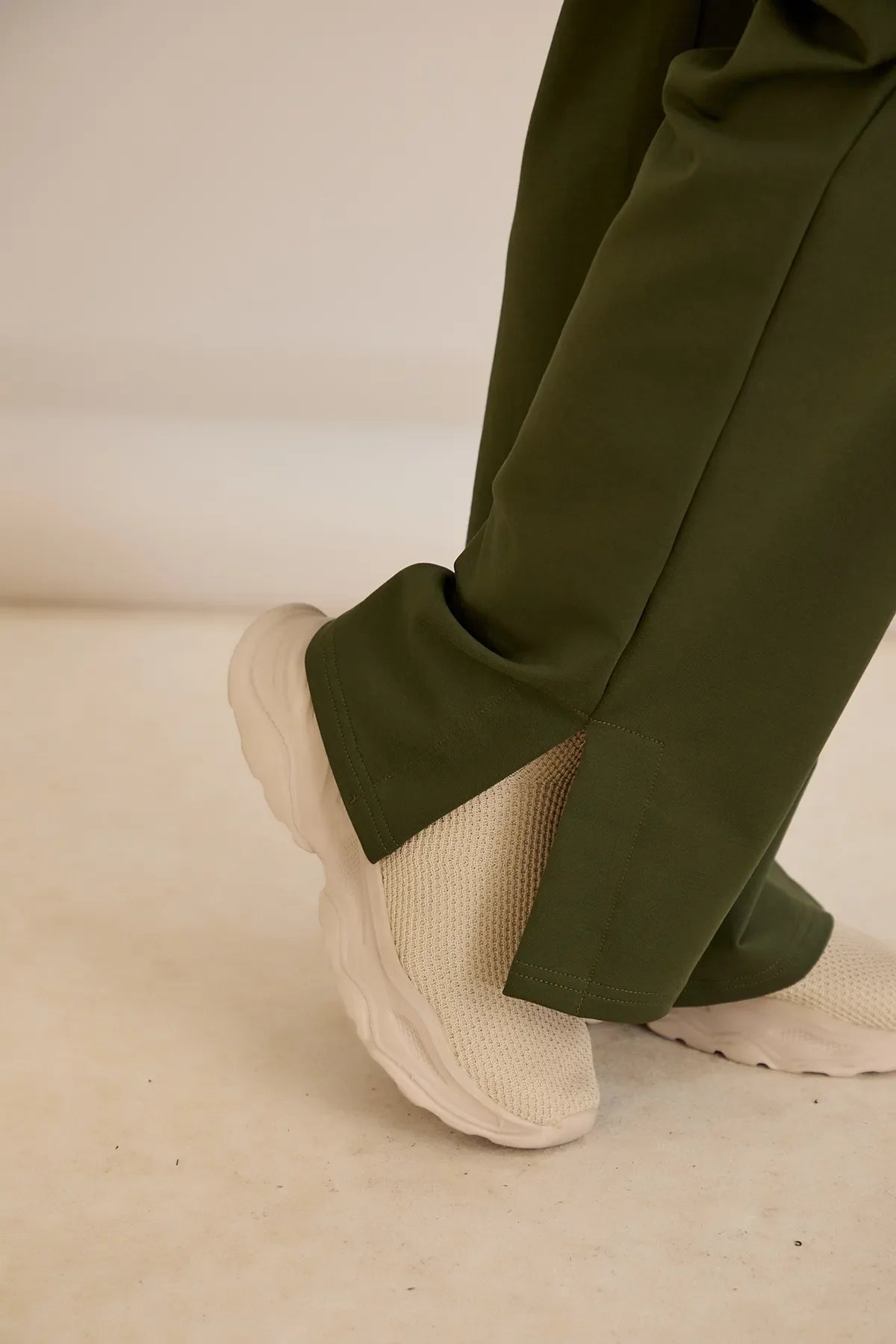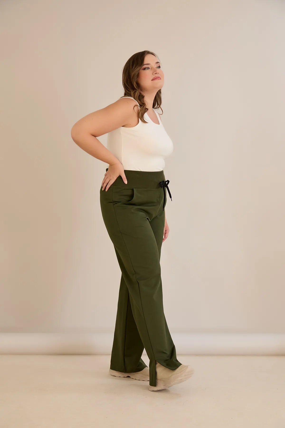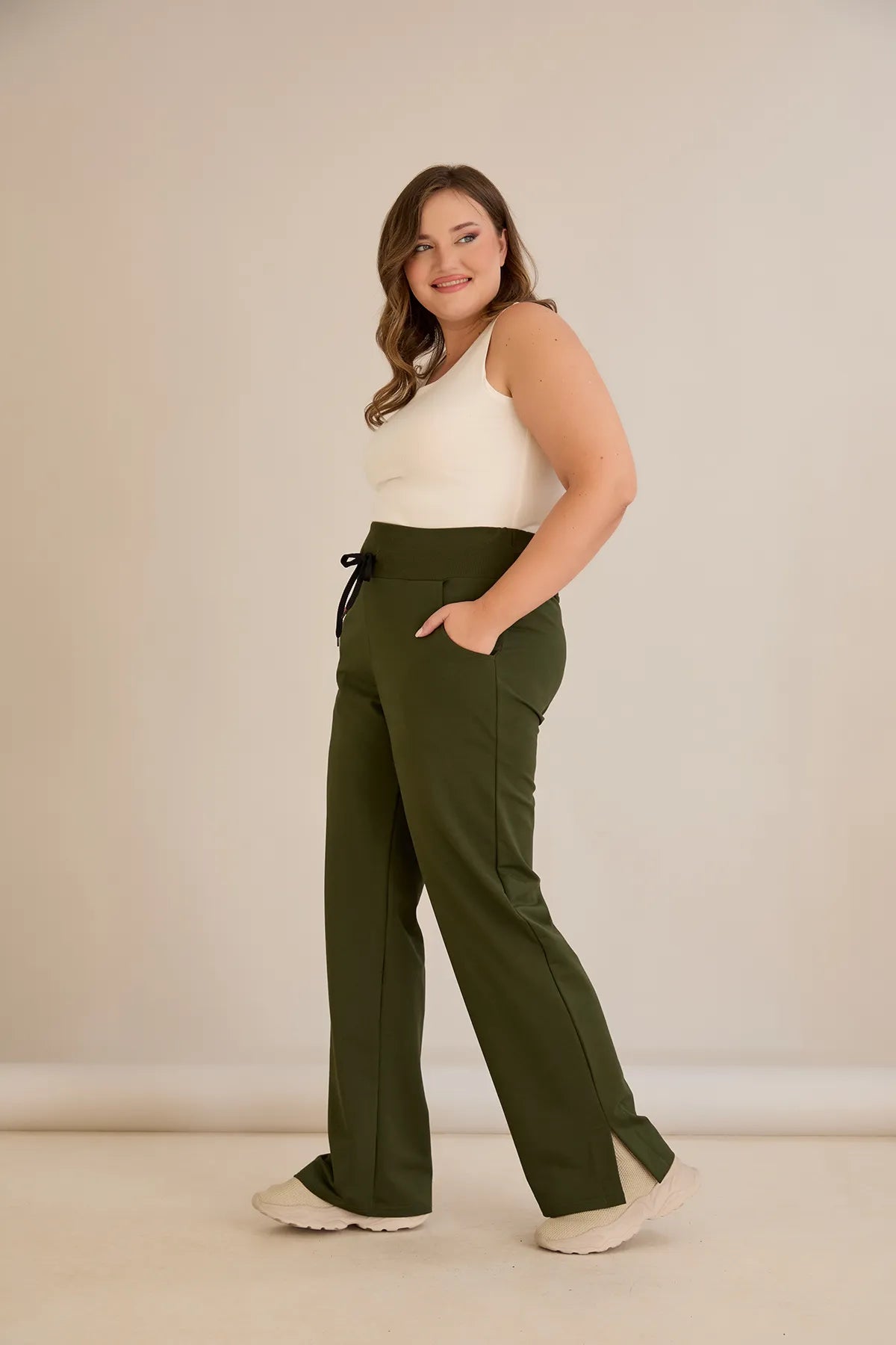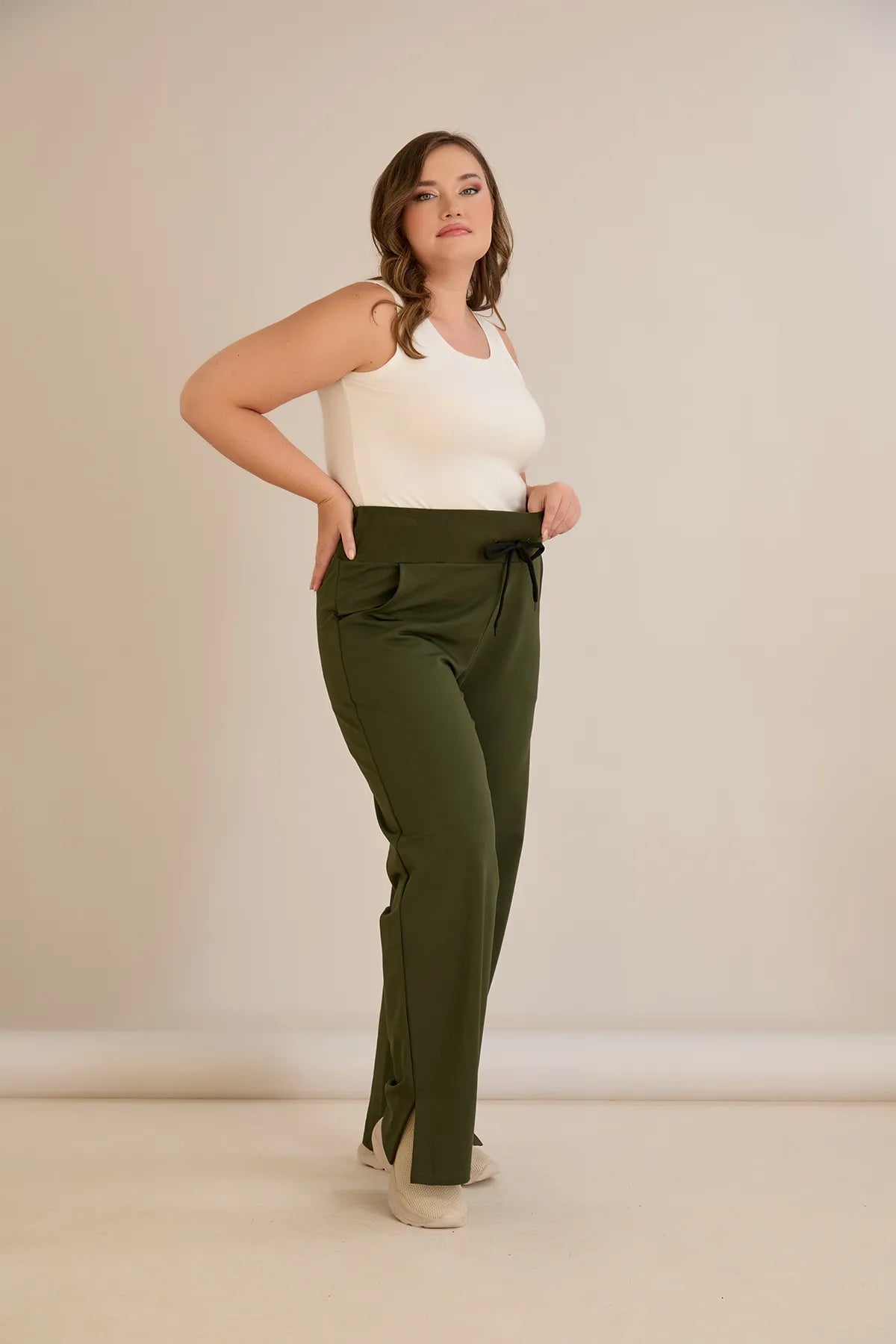 Pantalon larg marime mare cu despicaturi laterale - kaki