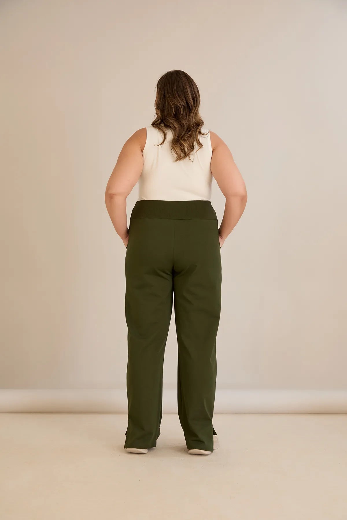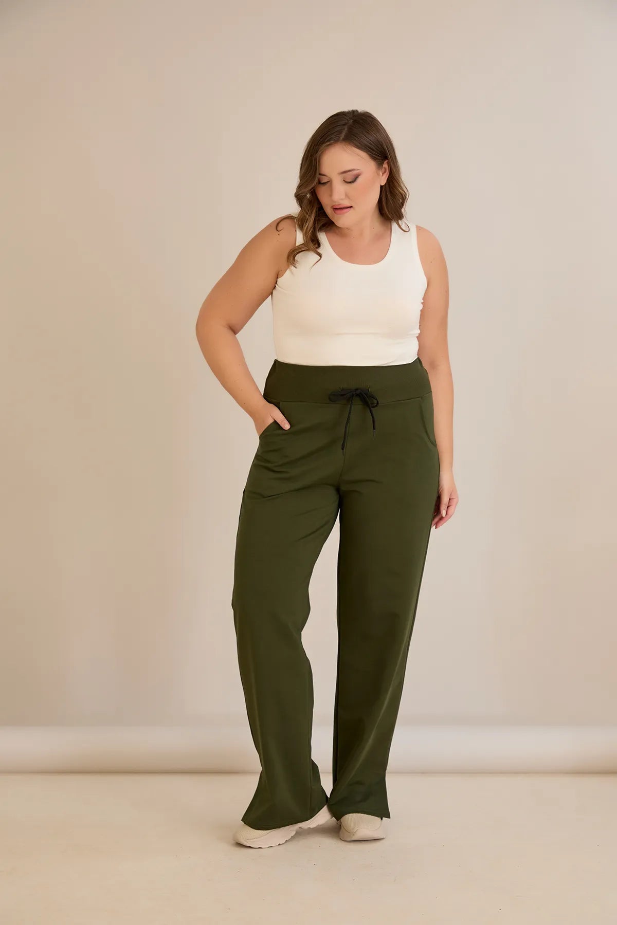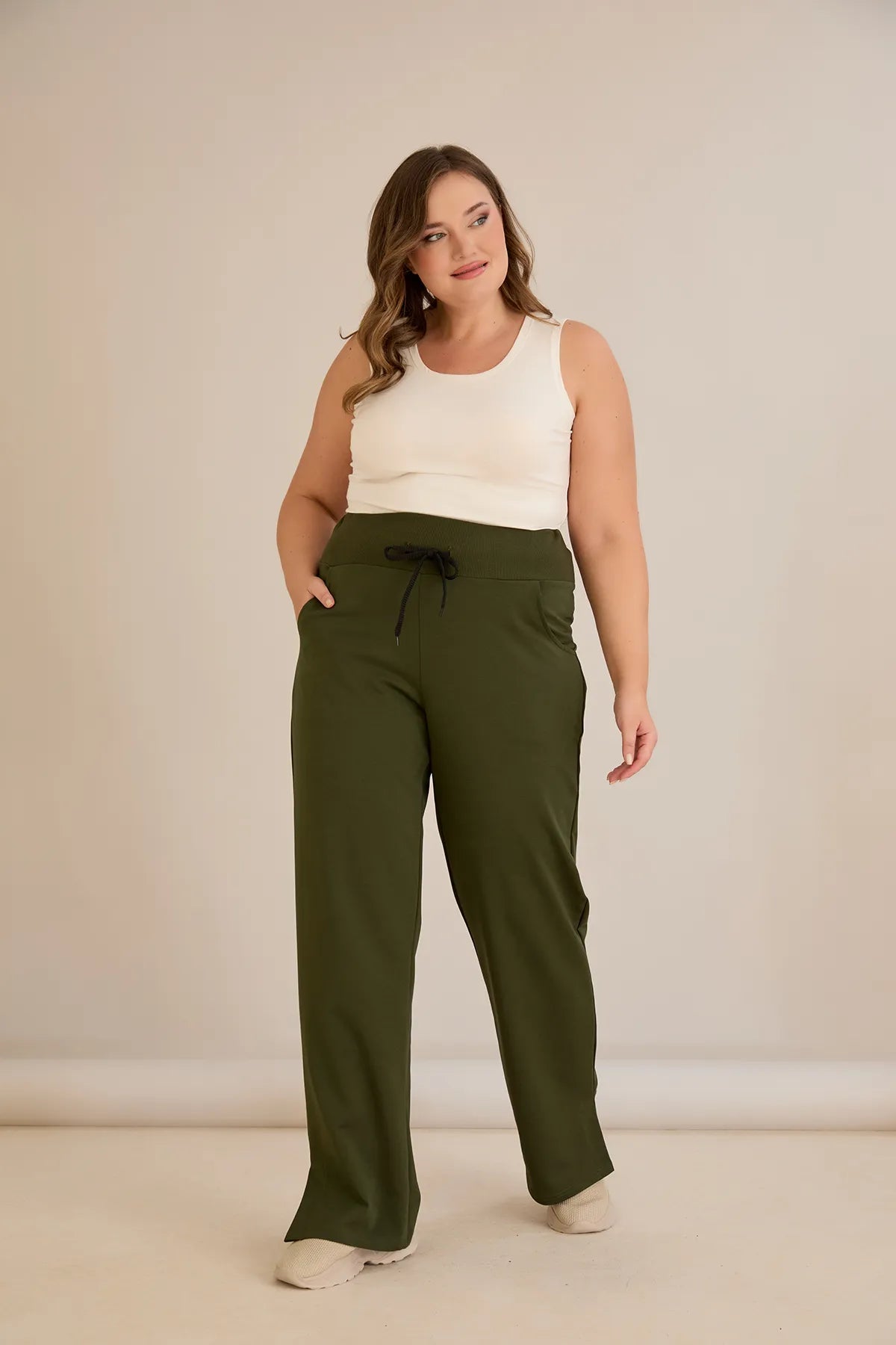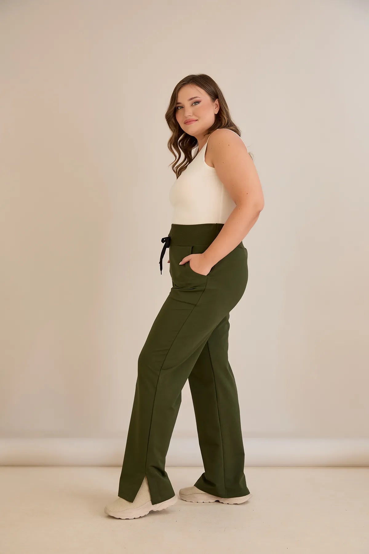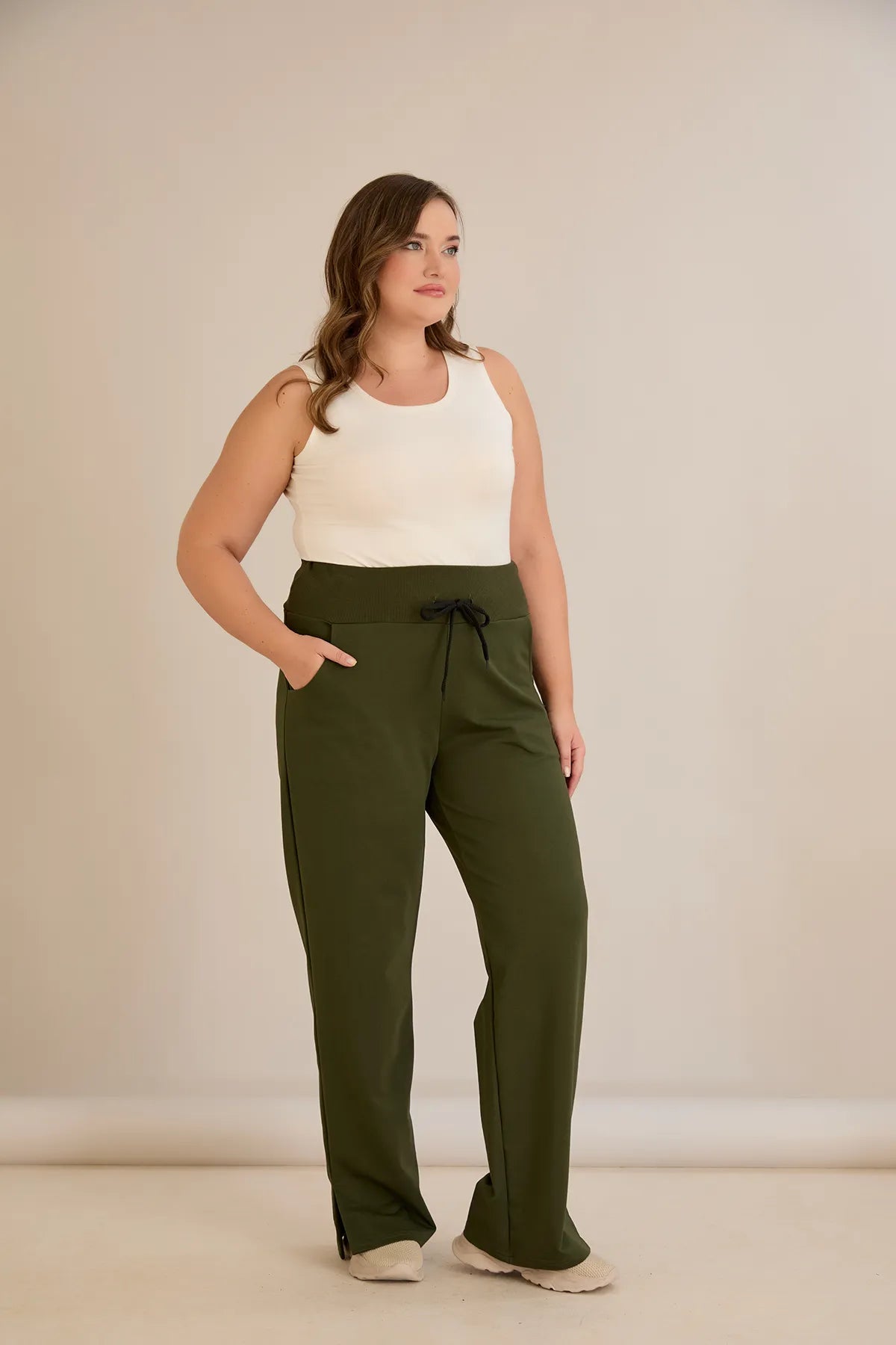 Pantalon larg marime mare cu despicaturi laterale - kaki