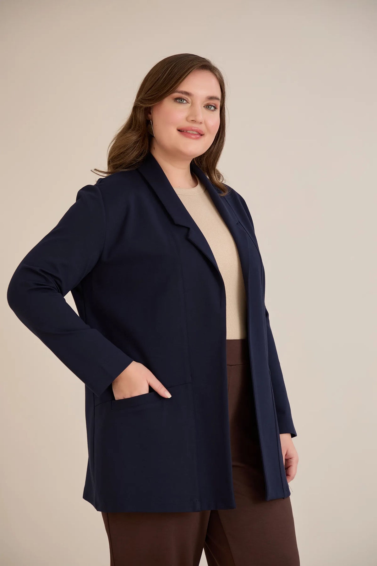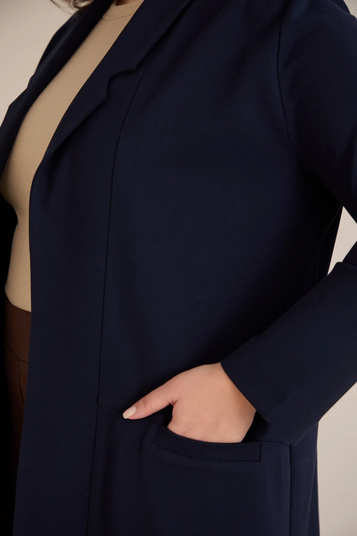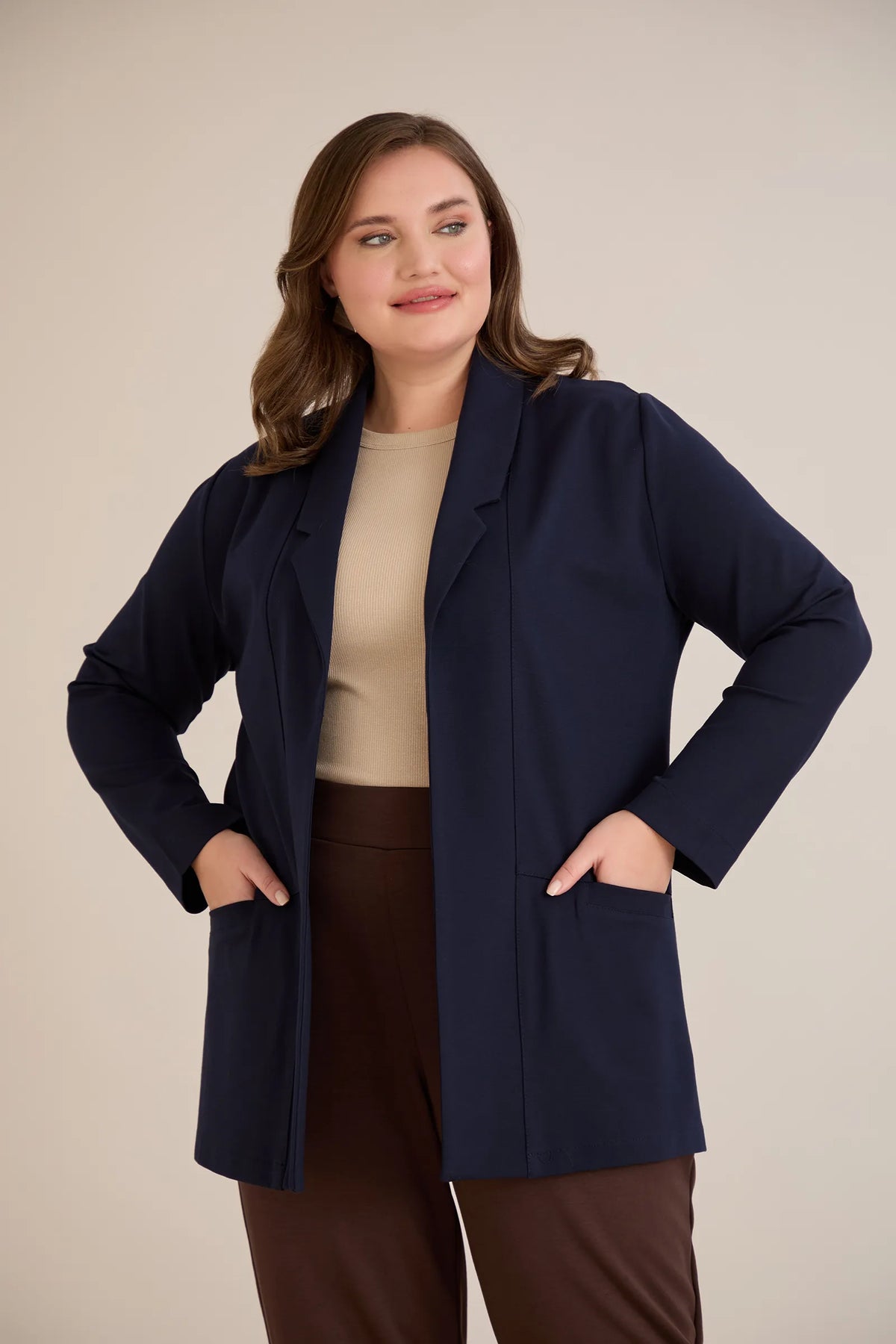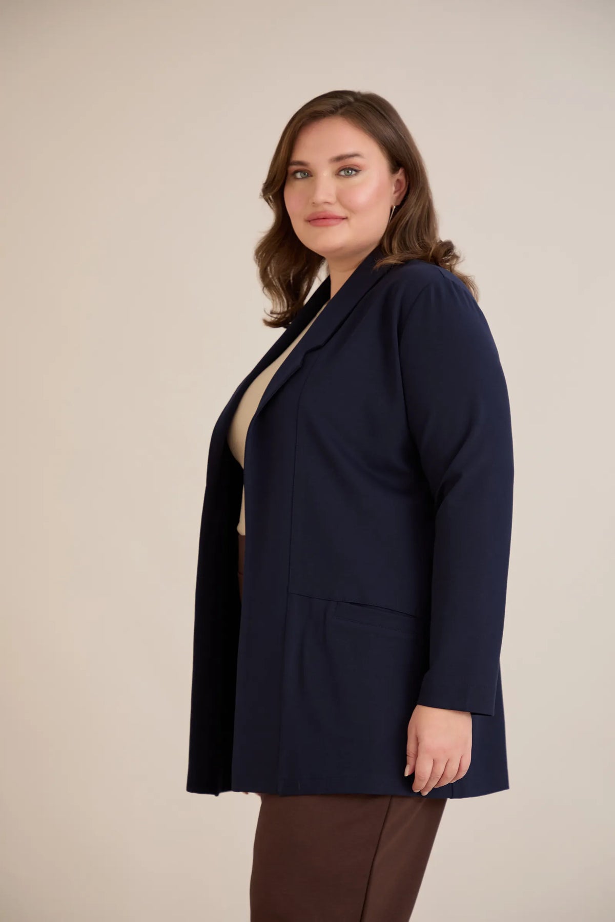 Blazer mărime mare sport-elegant fără închidere – bleumarin