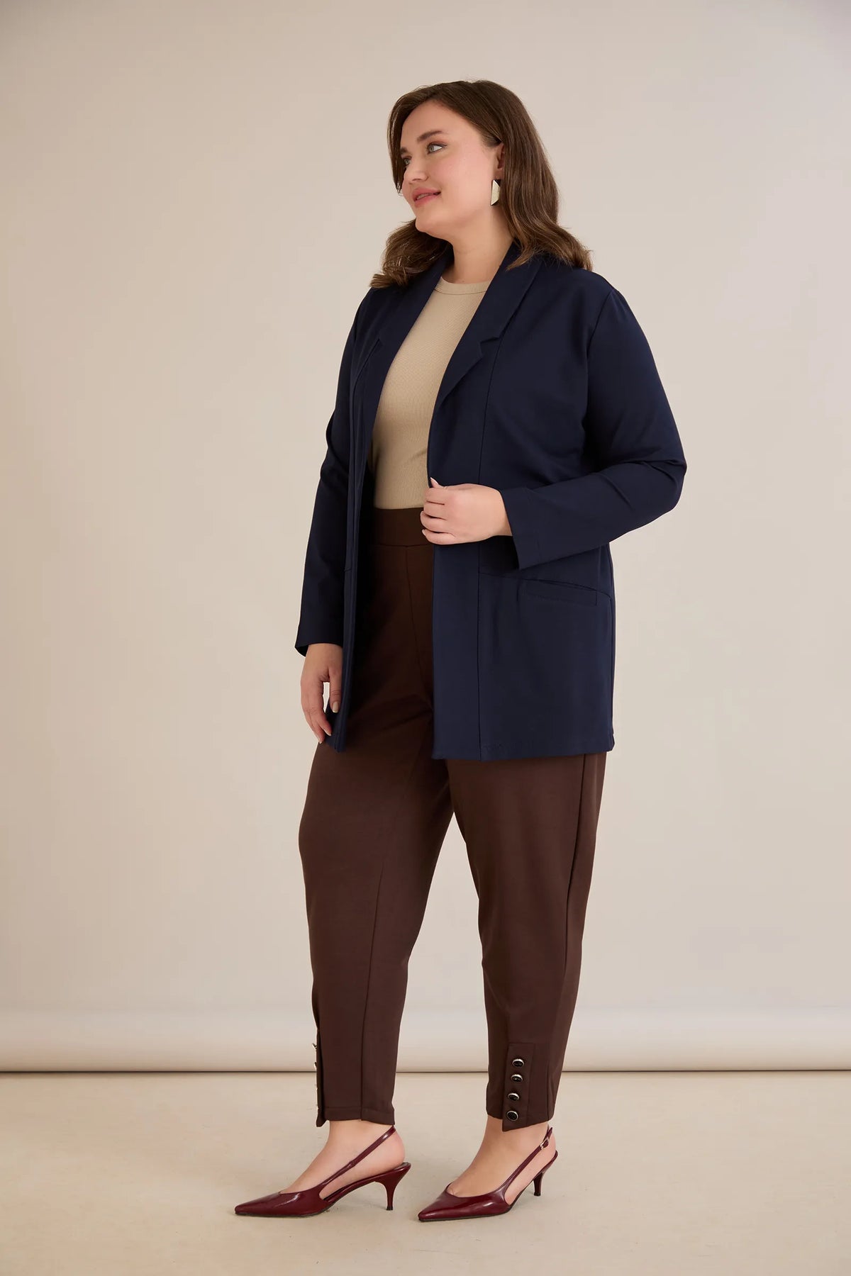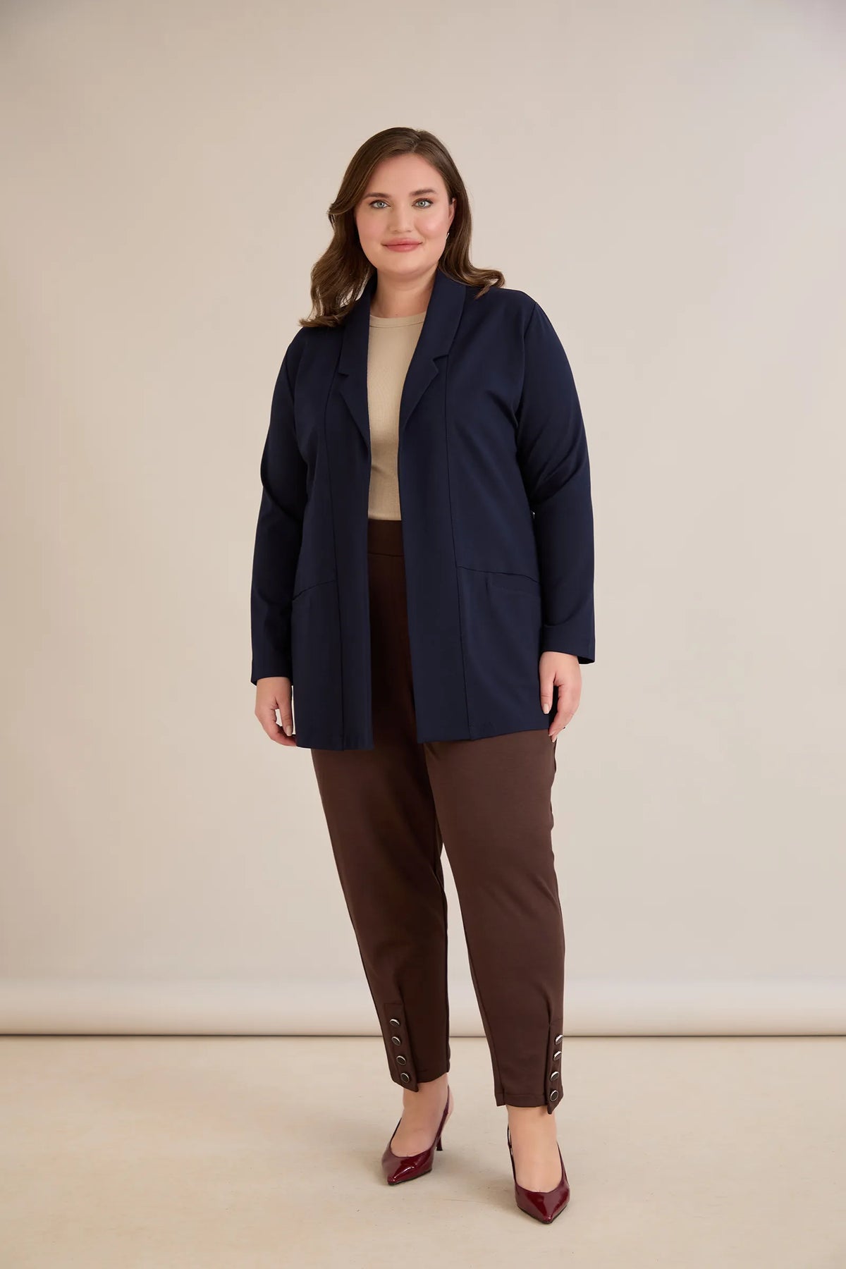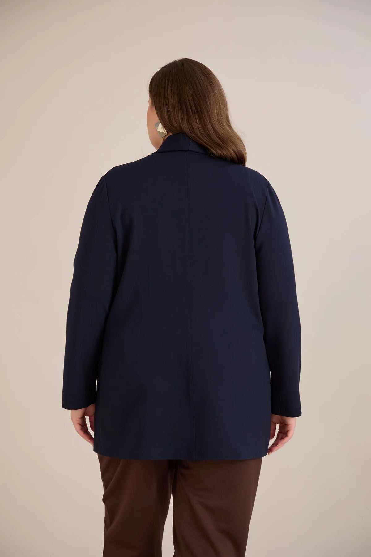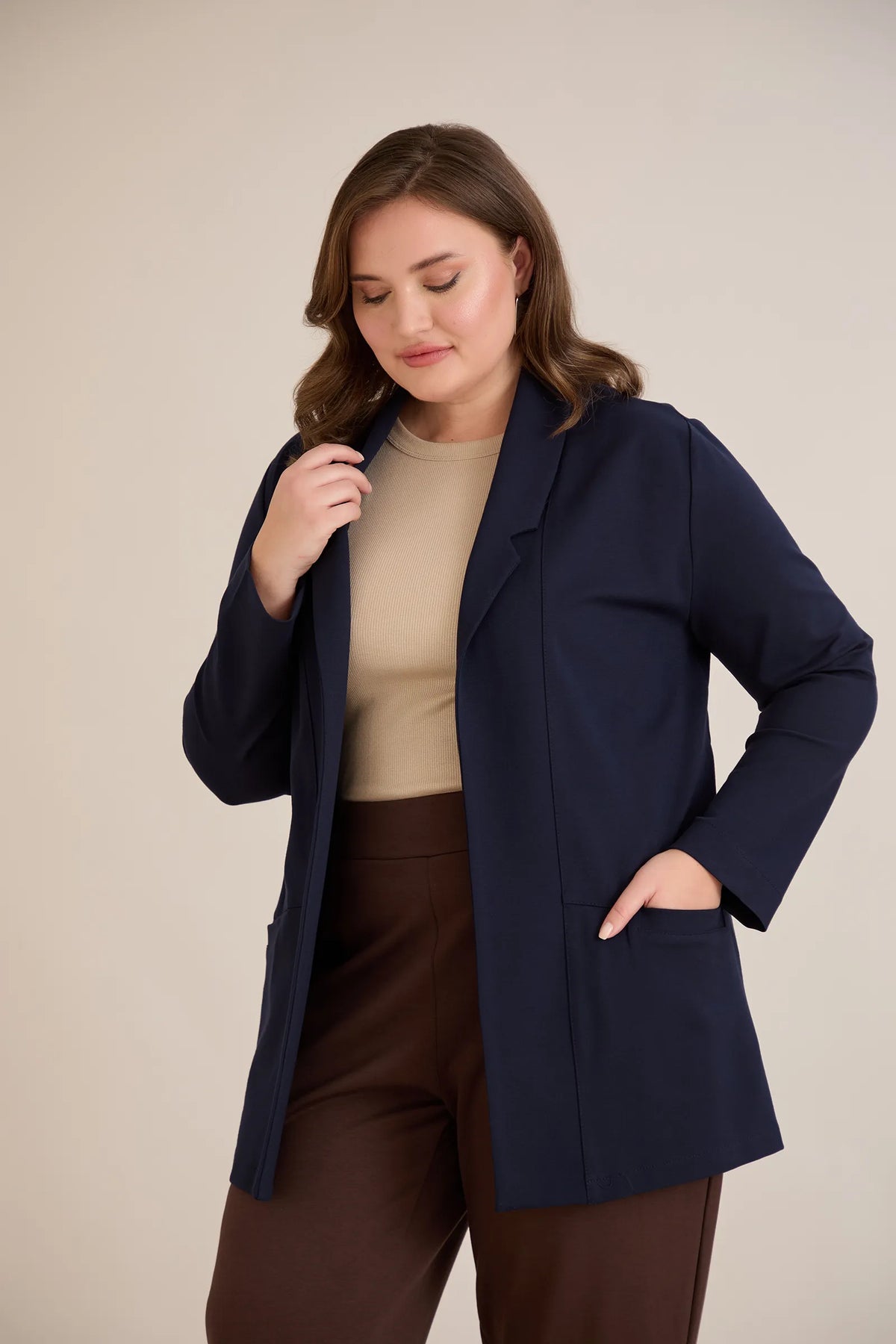 Blazer mărime mare sport-elegant fără închidere – bleumarin