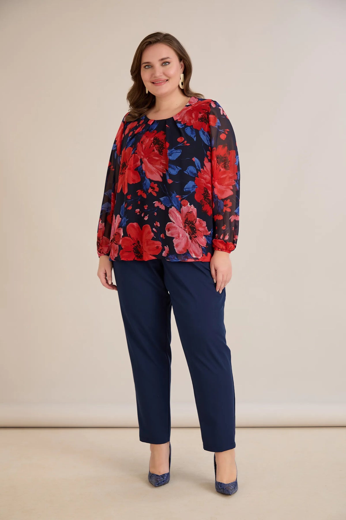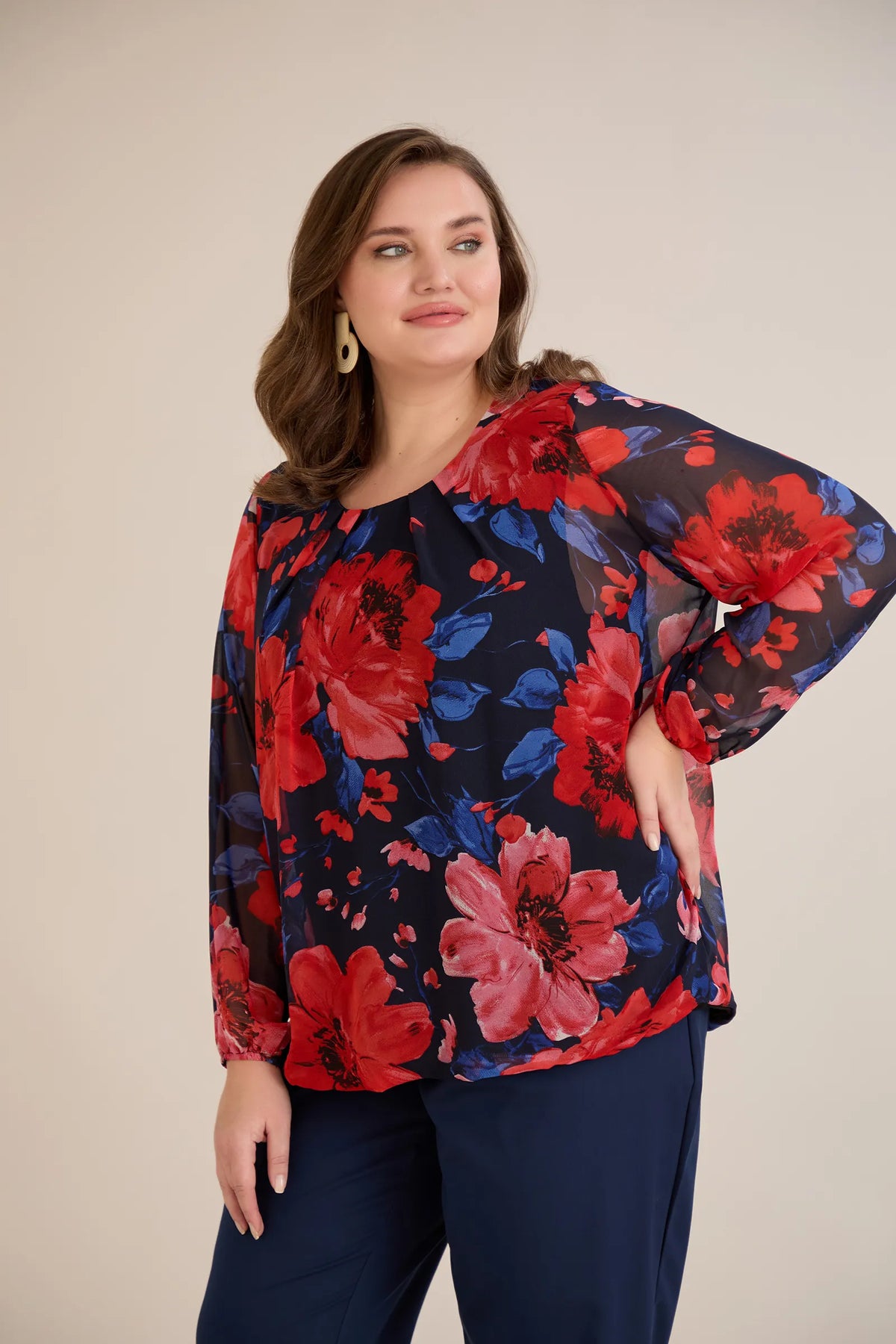 Bluză mărime mare cu croială lejeră din șifon - floral