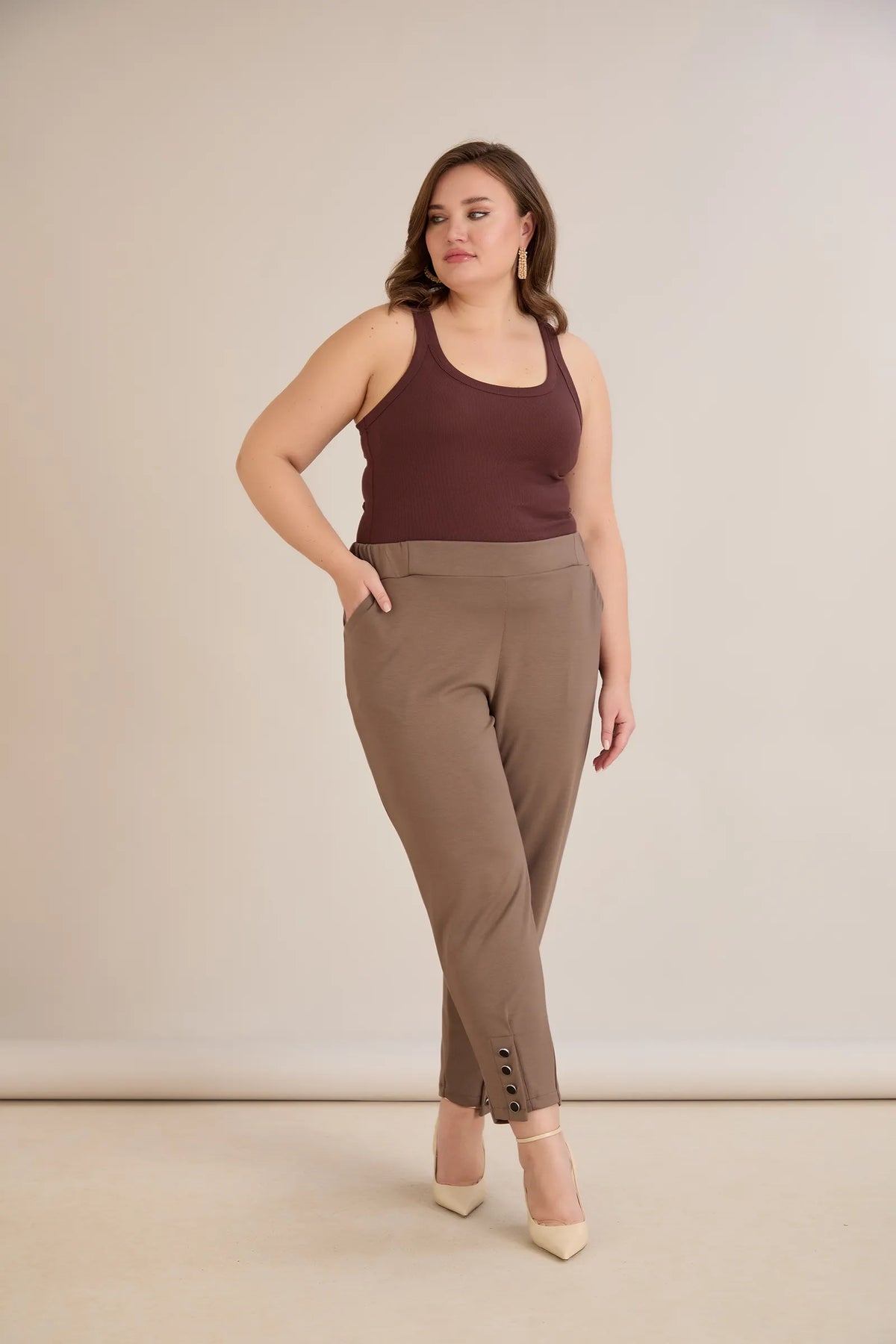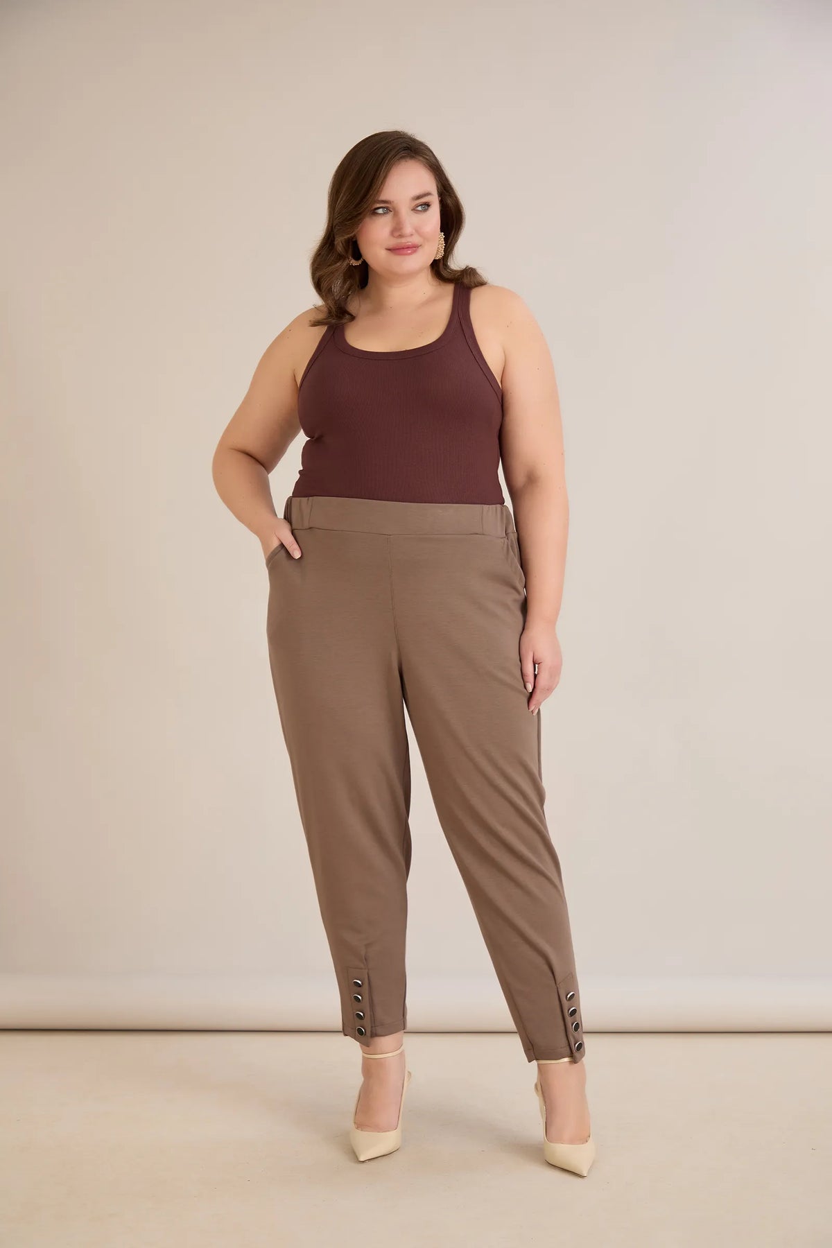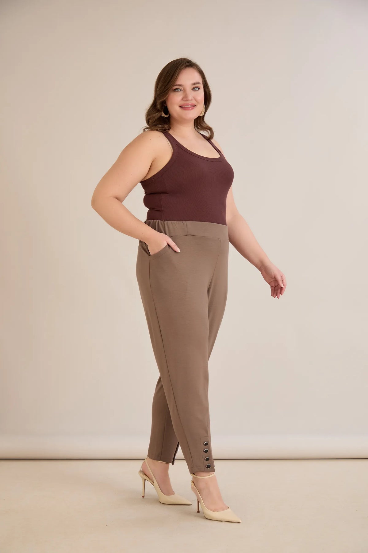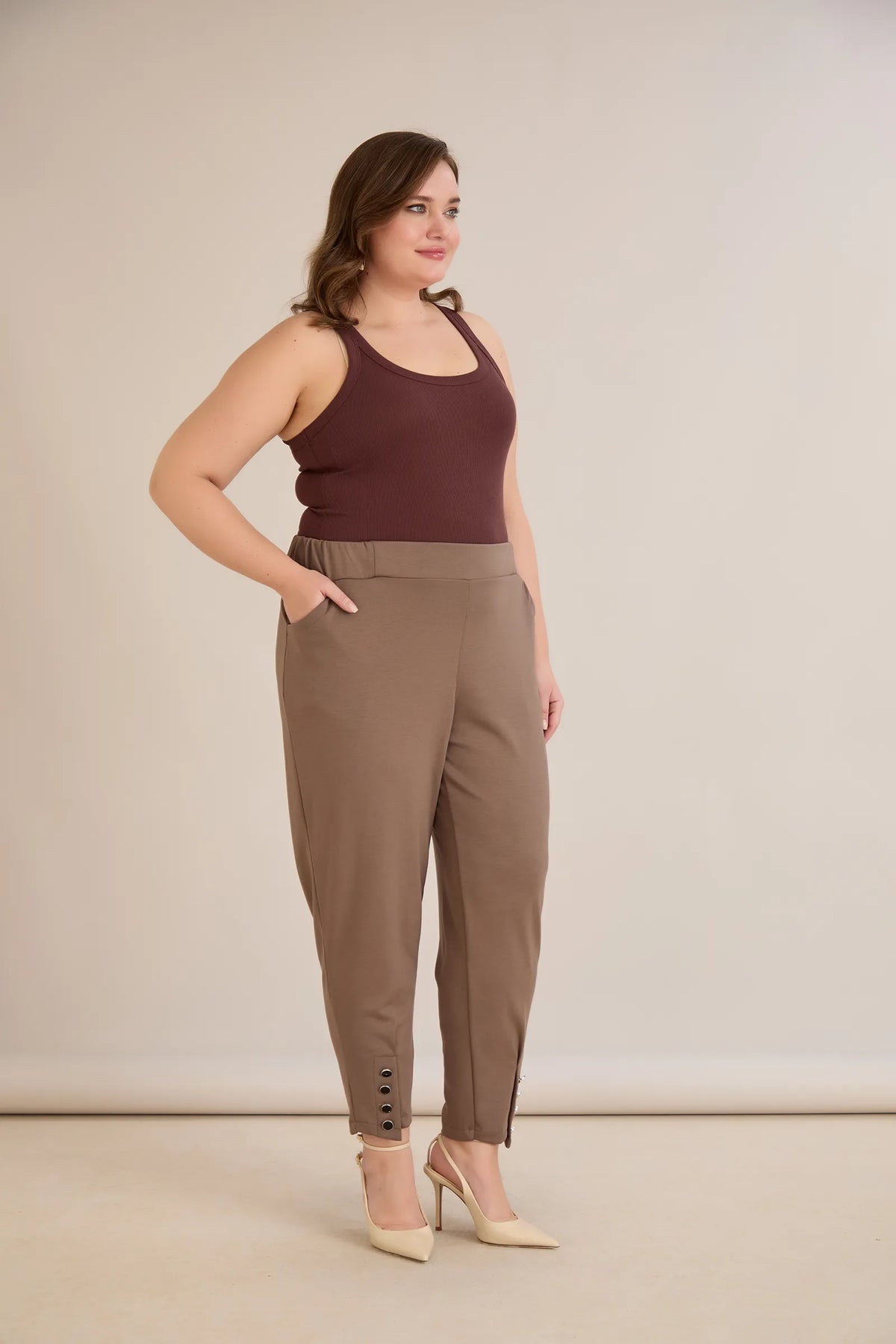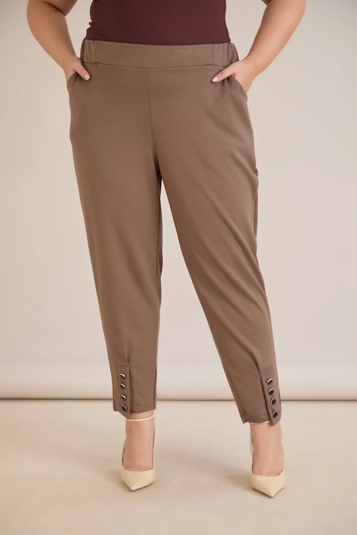 Pantaloni marimi mari elastici si eleganti cu nasturi la mansete - nurcă