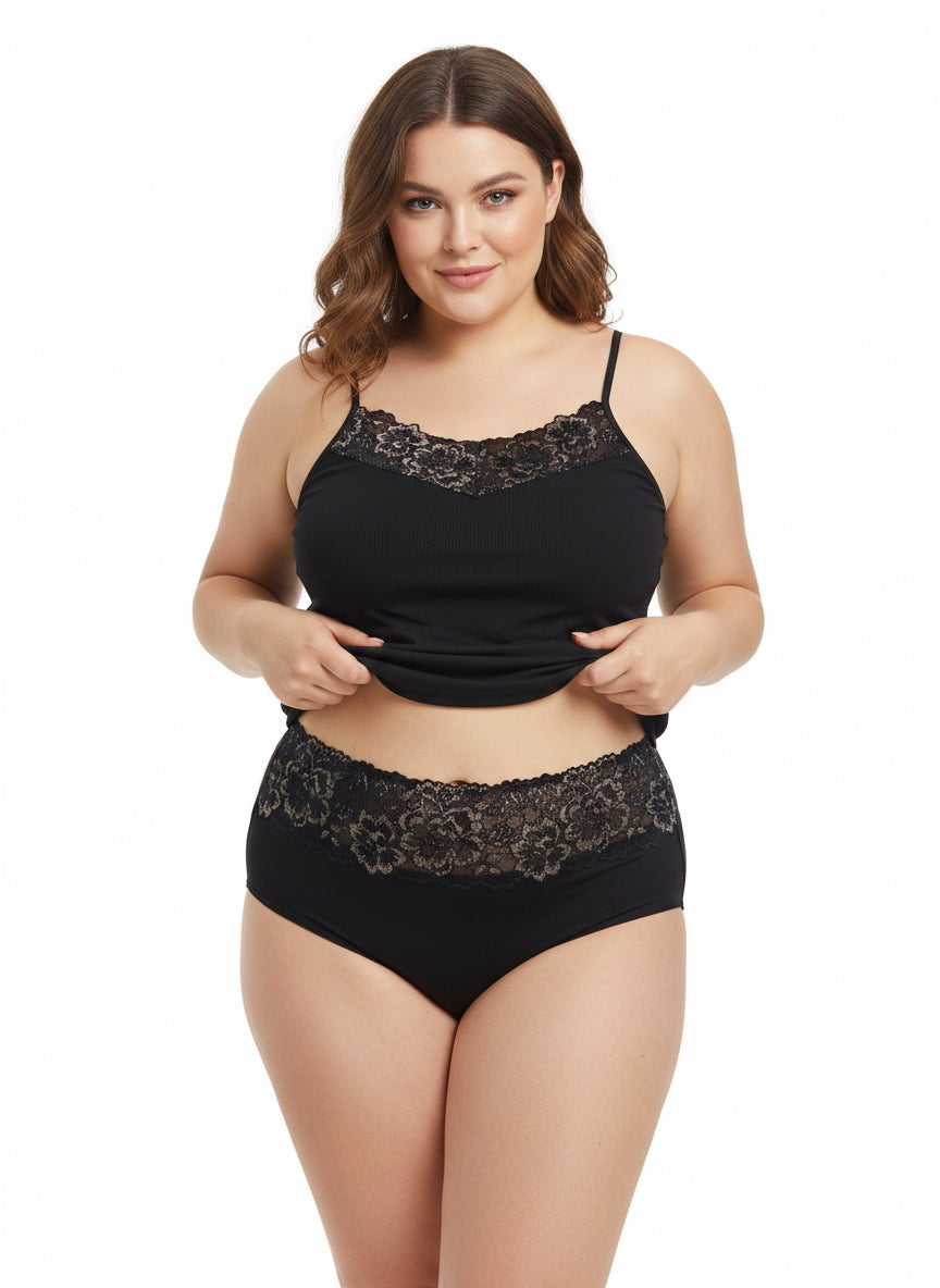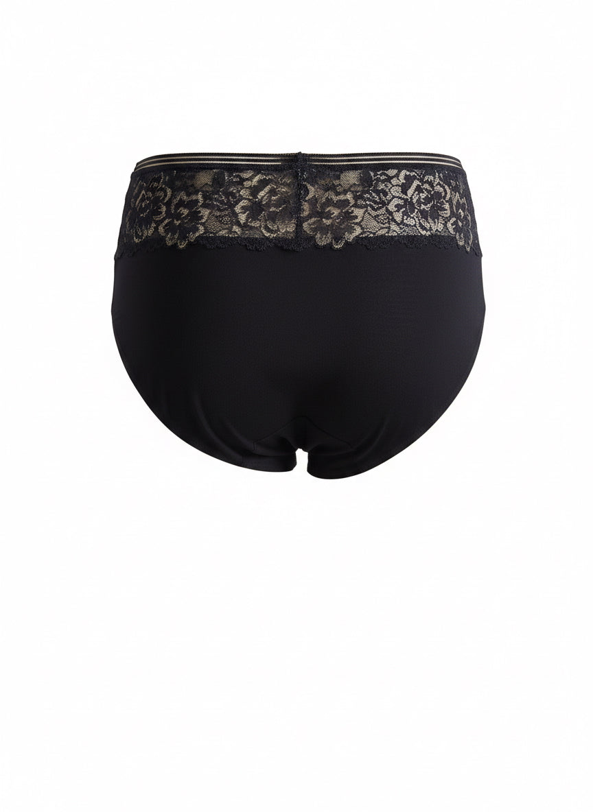 Chiloți mărimi mari din bumbac cu talie înaltă și dantelă - accent auriu