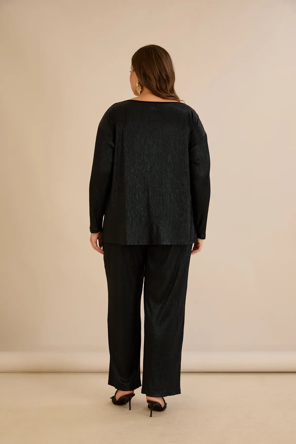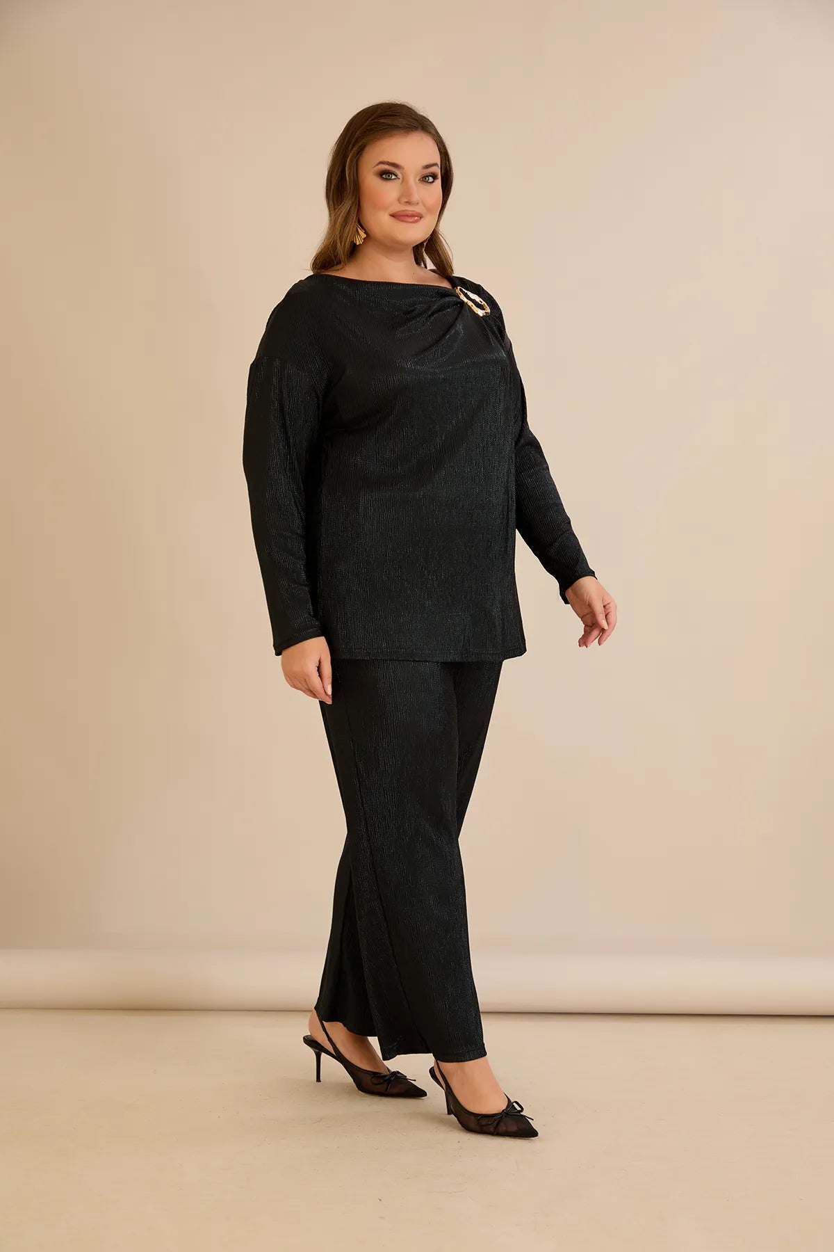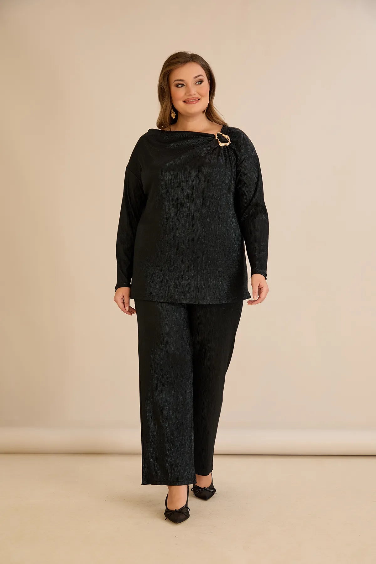 • Set din material elastic cu efect satinat luxos și reflexii elegante