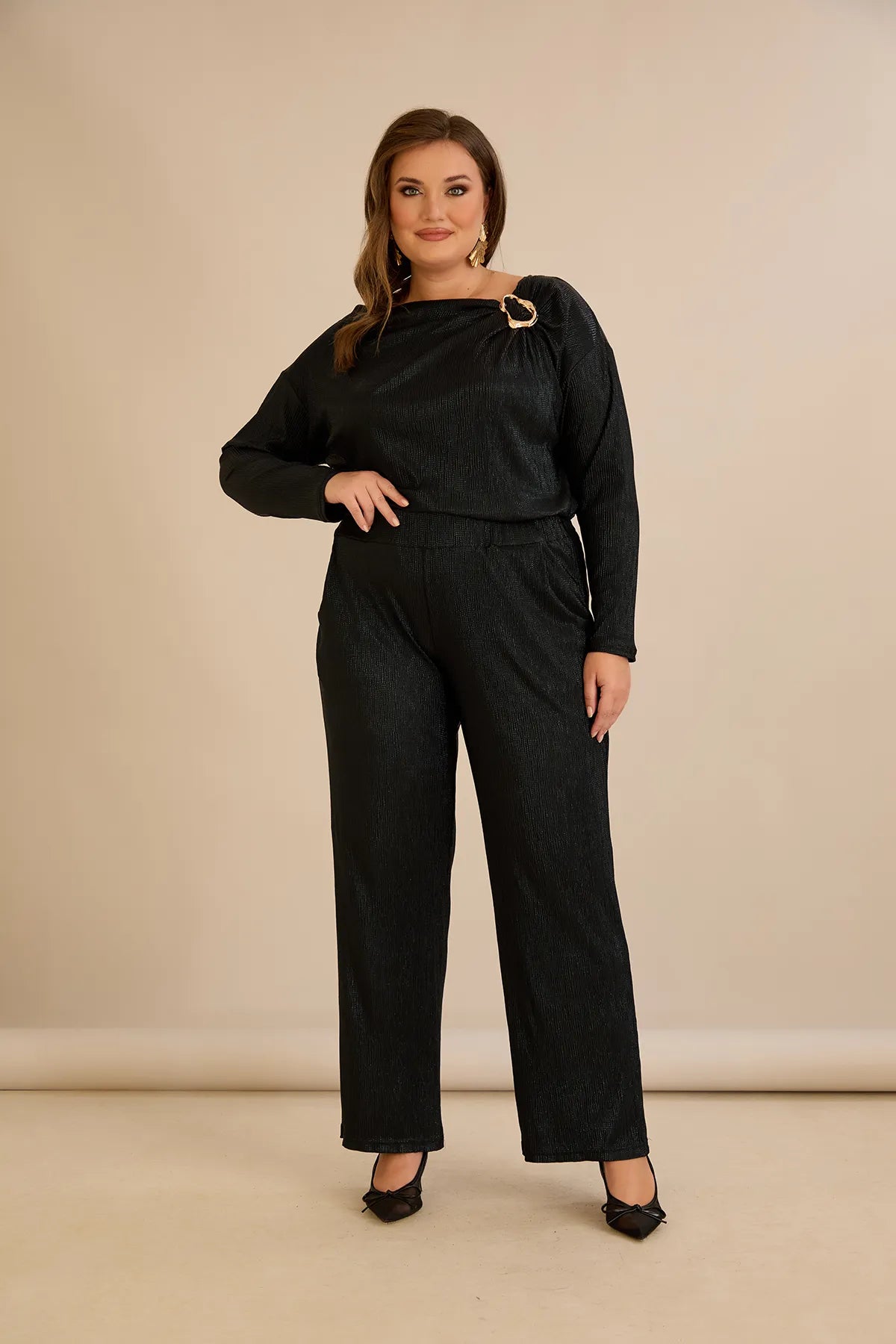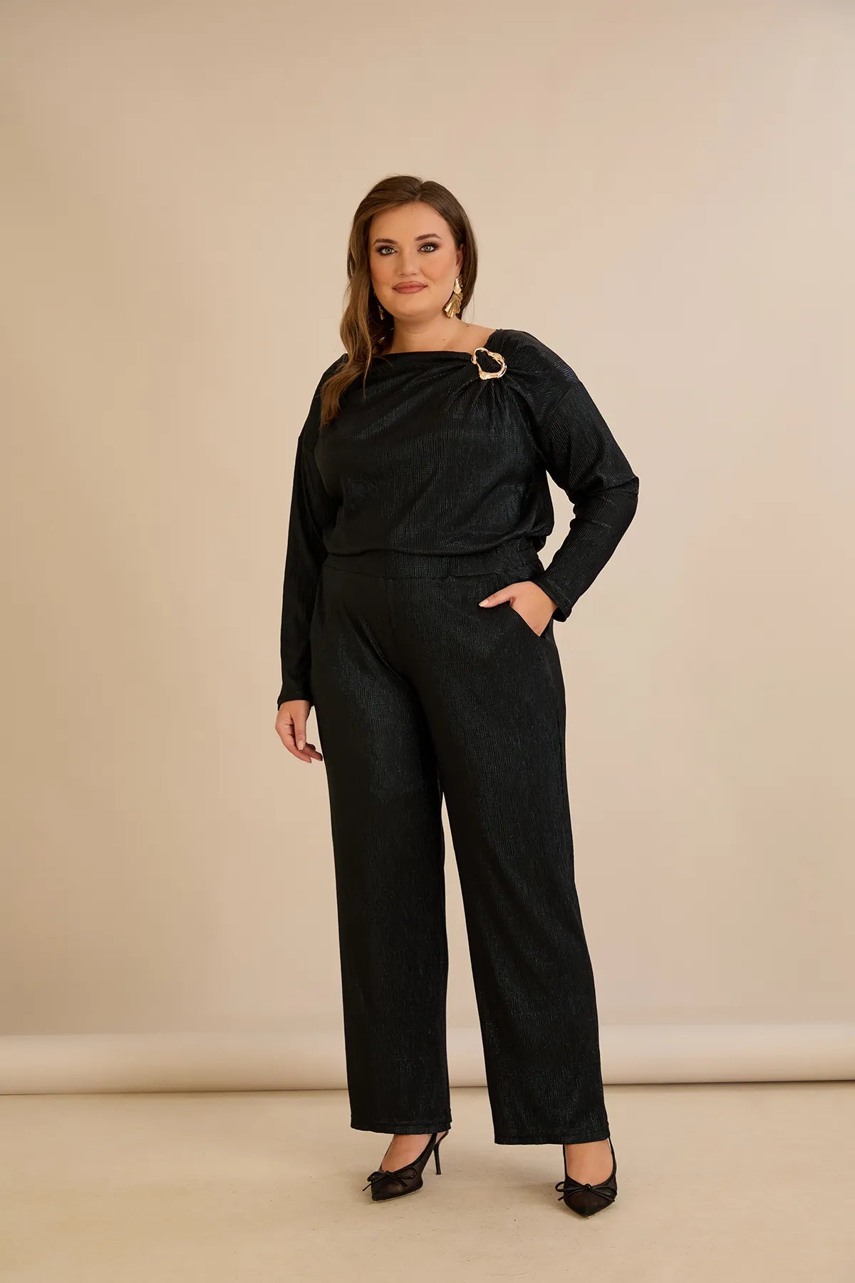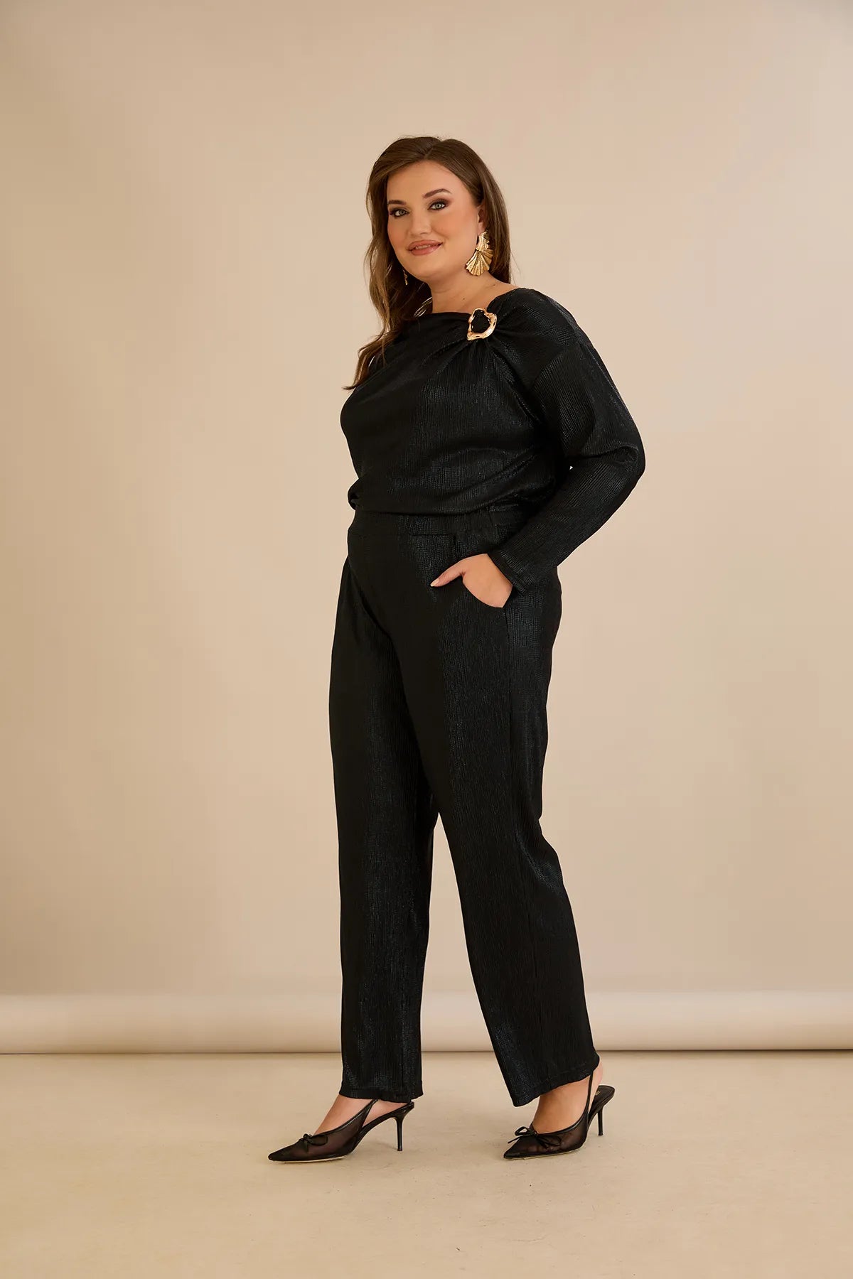 • Pantalon drept cu două buzunare, material cu cădere grea