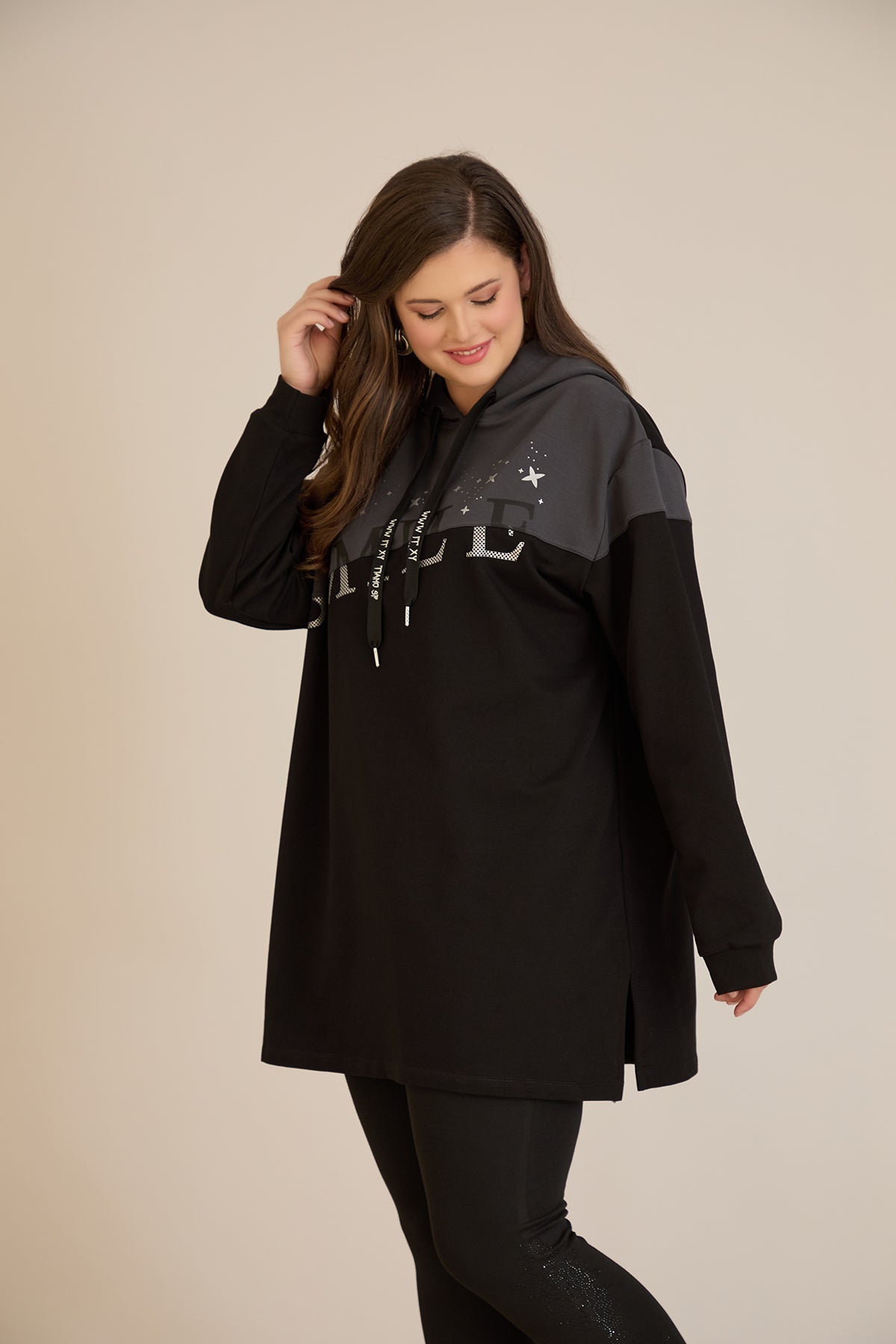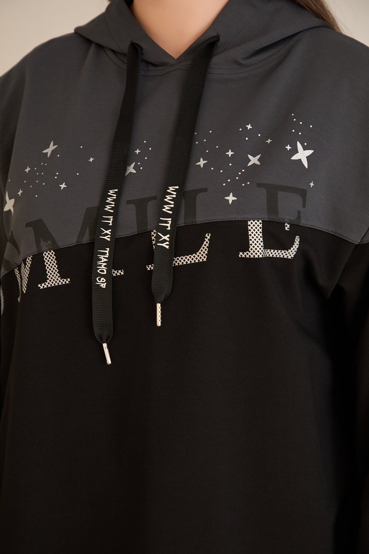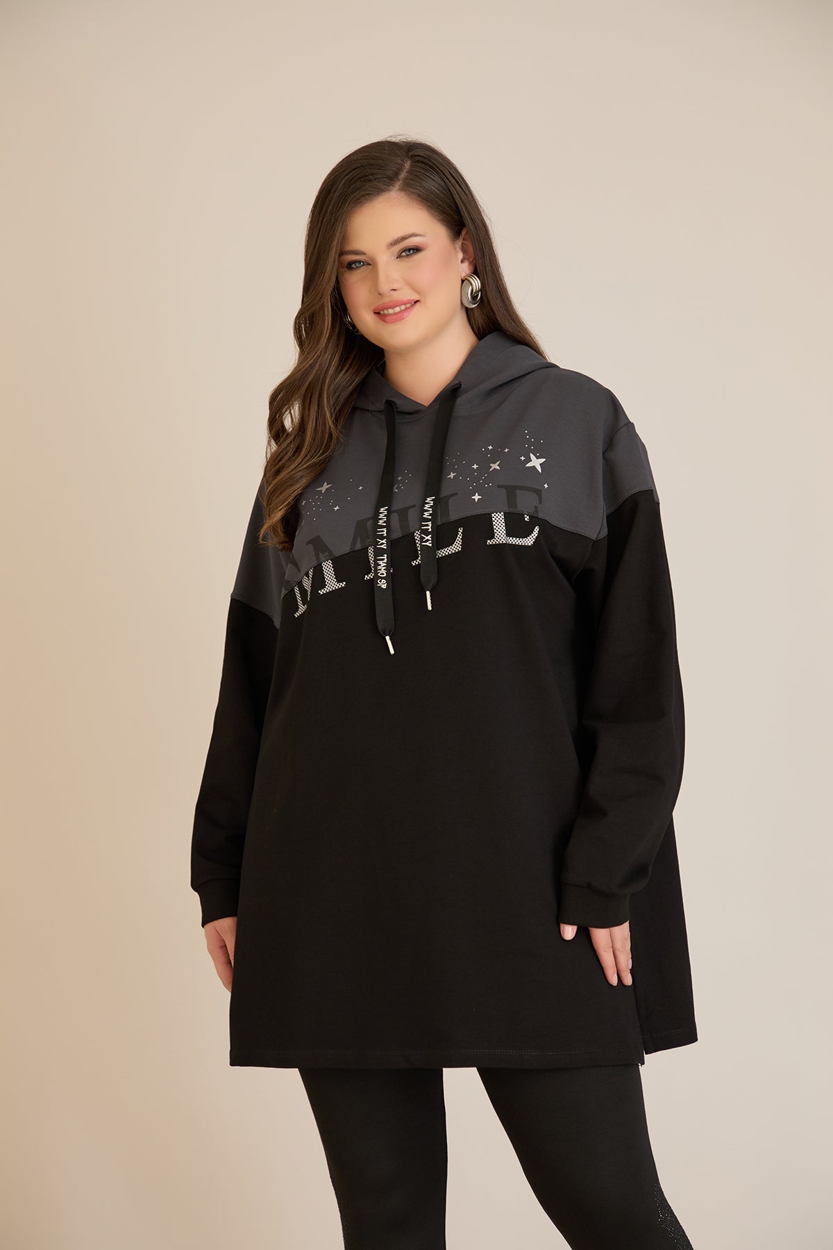 Bluzon marime mare din bumbac cu imprimeu Smile