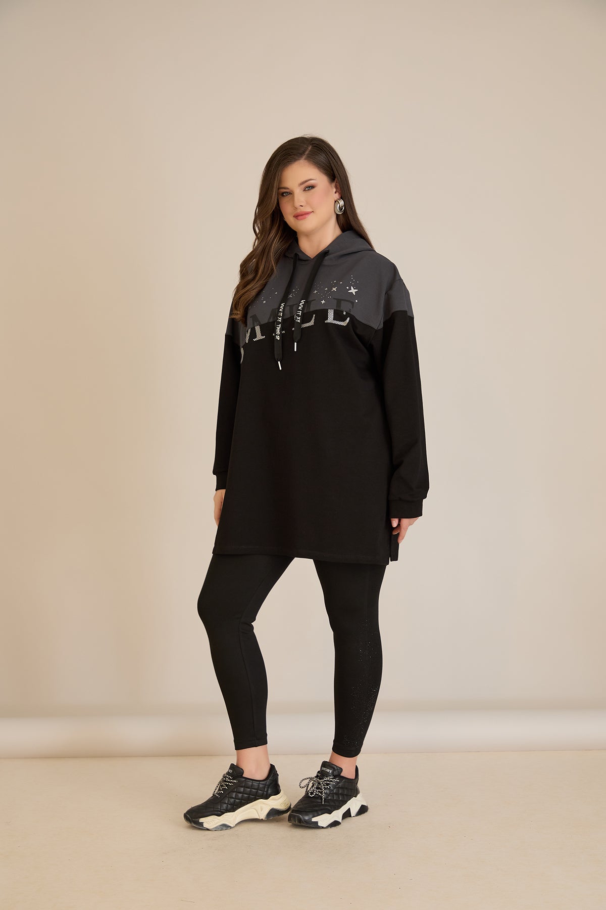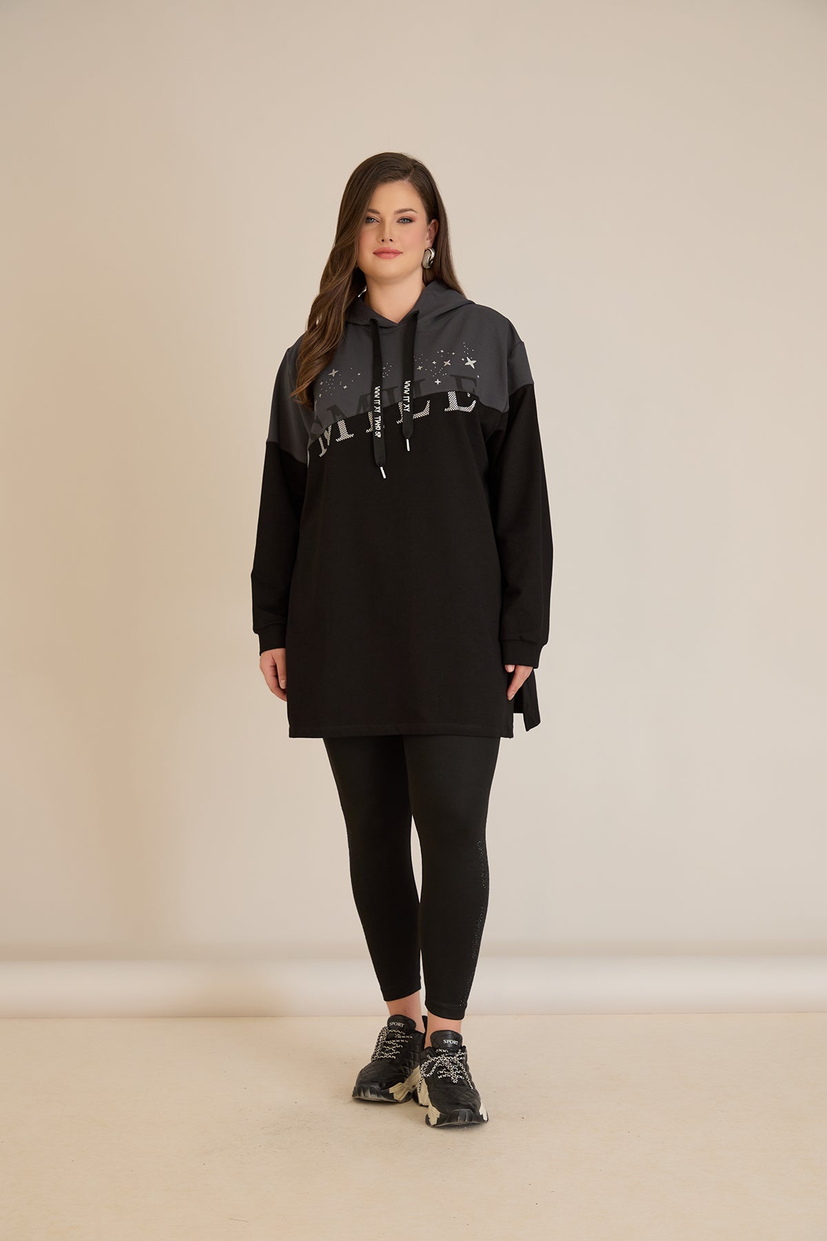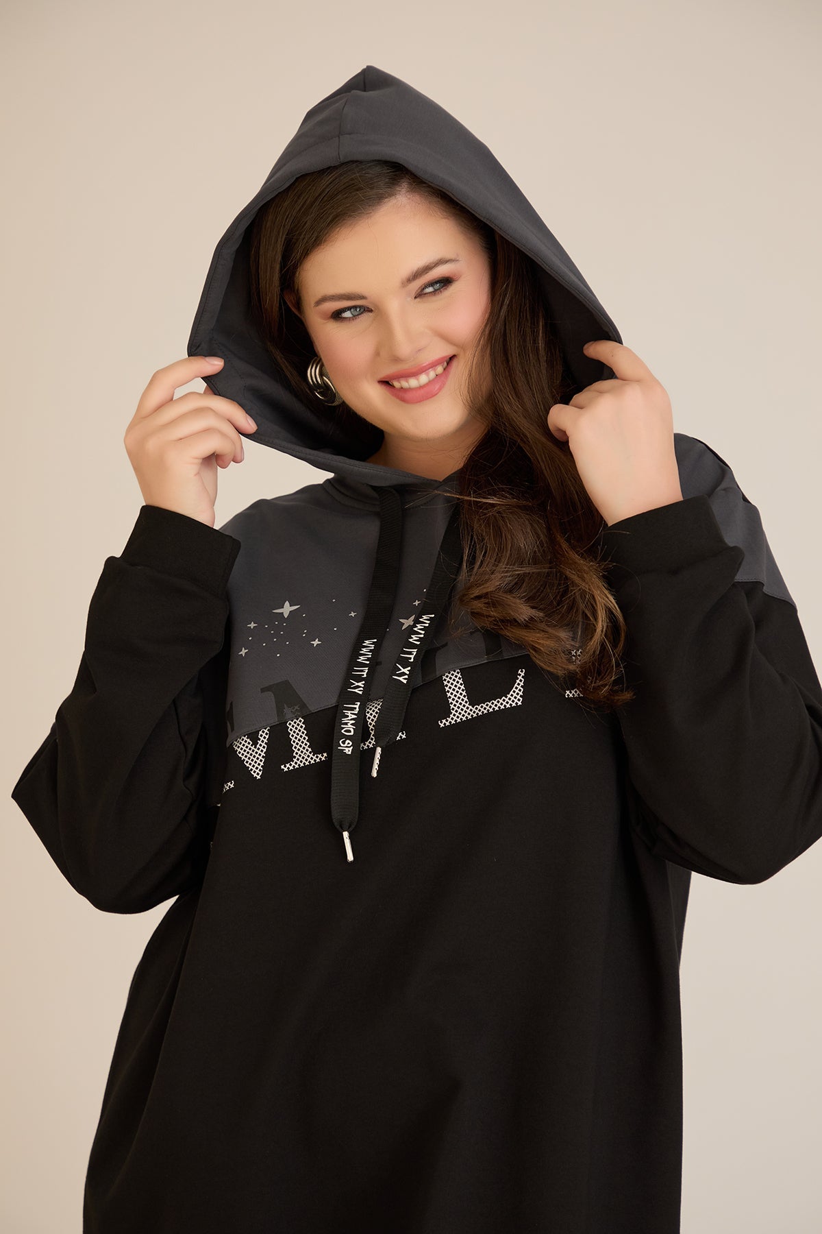 Bluzon marime mare din bumbac cu imprimeu Smile