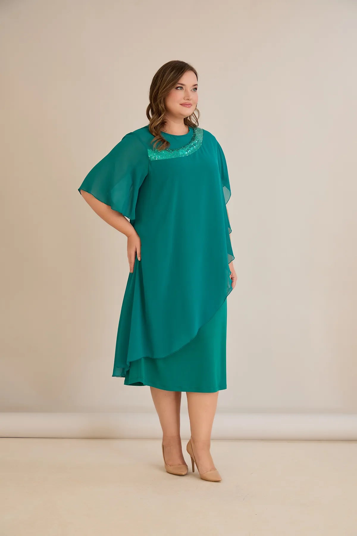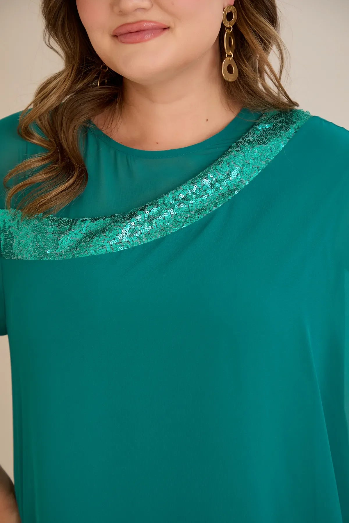 Rochie festivă mărime mare din șifon cu paiete – aqua