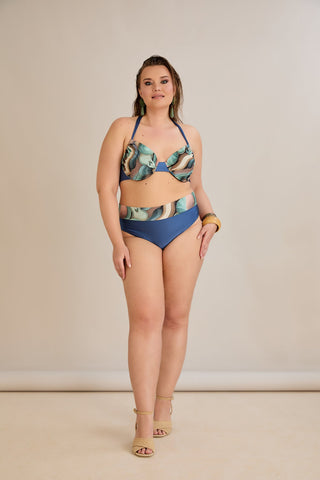 Fustă de plajă în mărimi mari – model simplu cu bandă elastică și șnururi pe laterale pentru ajustarea lungimii. O soluție practică și elegantă pentru doamnele care caută confort și stil pe plajă și în jurul barului de la piscină.