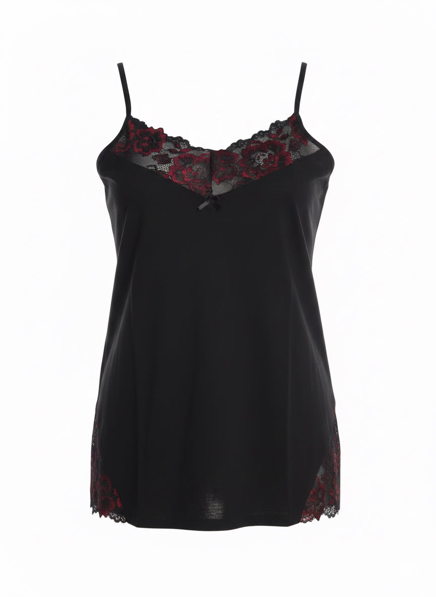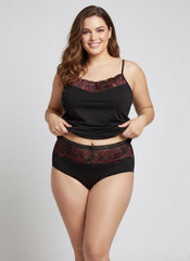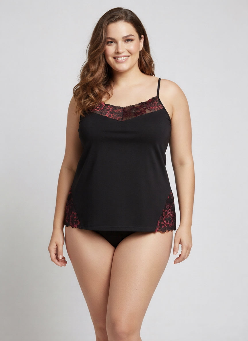 Maiou mărime mare din bumbac cu dantelă – accent roșu