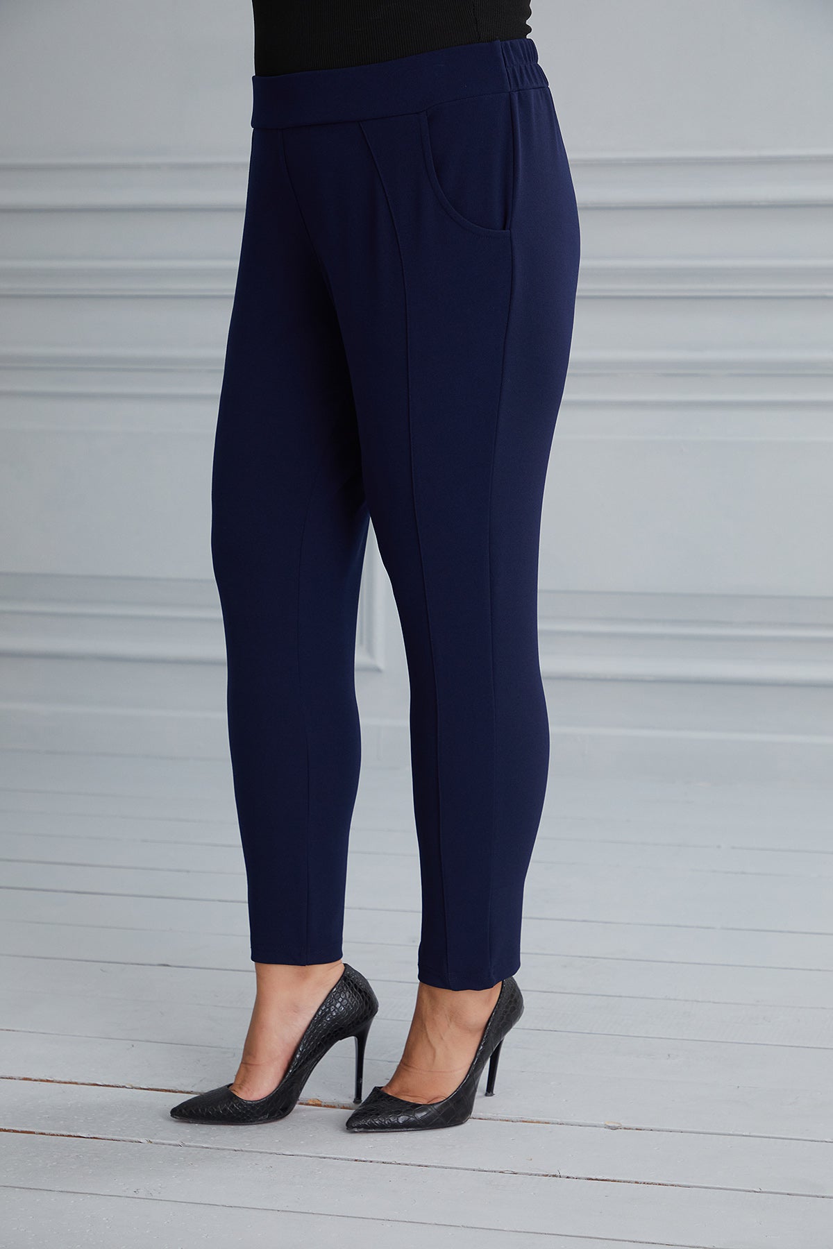 Pantalon marime mare drept Georgete - albastru inchis