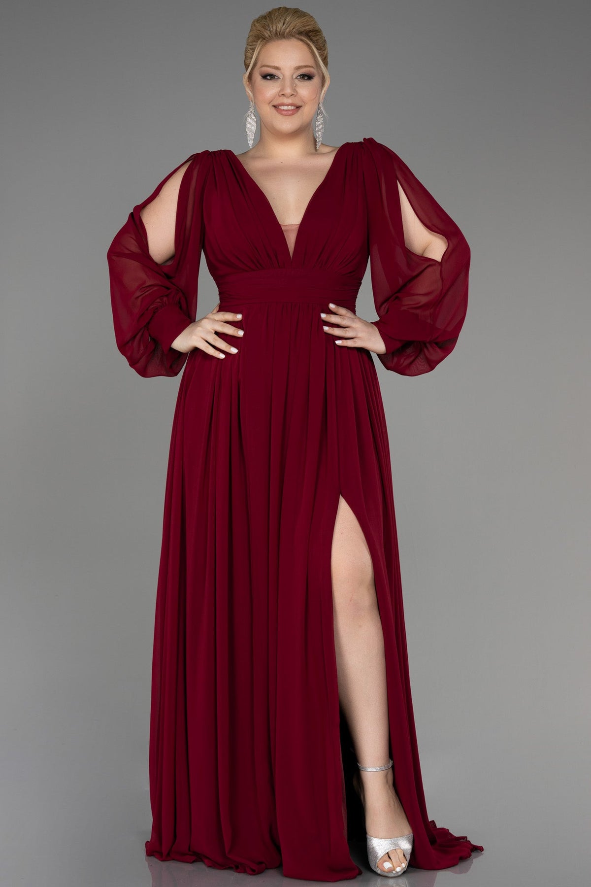 Rochie de ocazie marime mare lunga din sifon - bordo