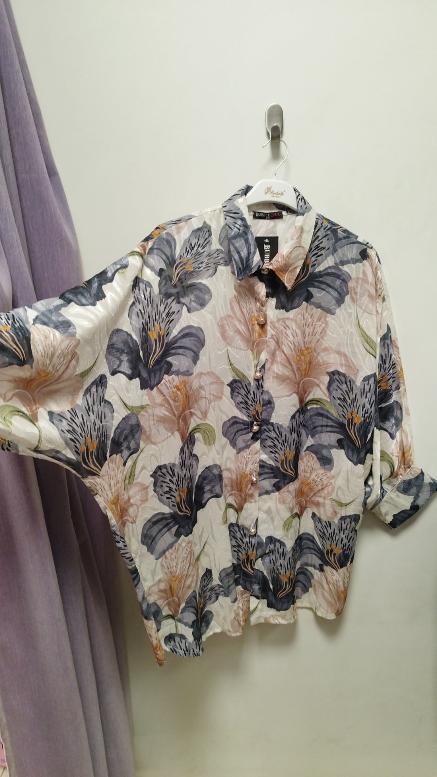 • Cămașă vaporoasă și elegantă, realizată dintr-un material ușor, cu un relief delicat și o strălucire fină