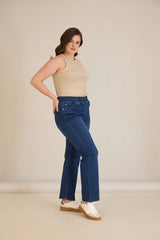 Sacou marime mare din denim cu rever - turcoaz