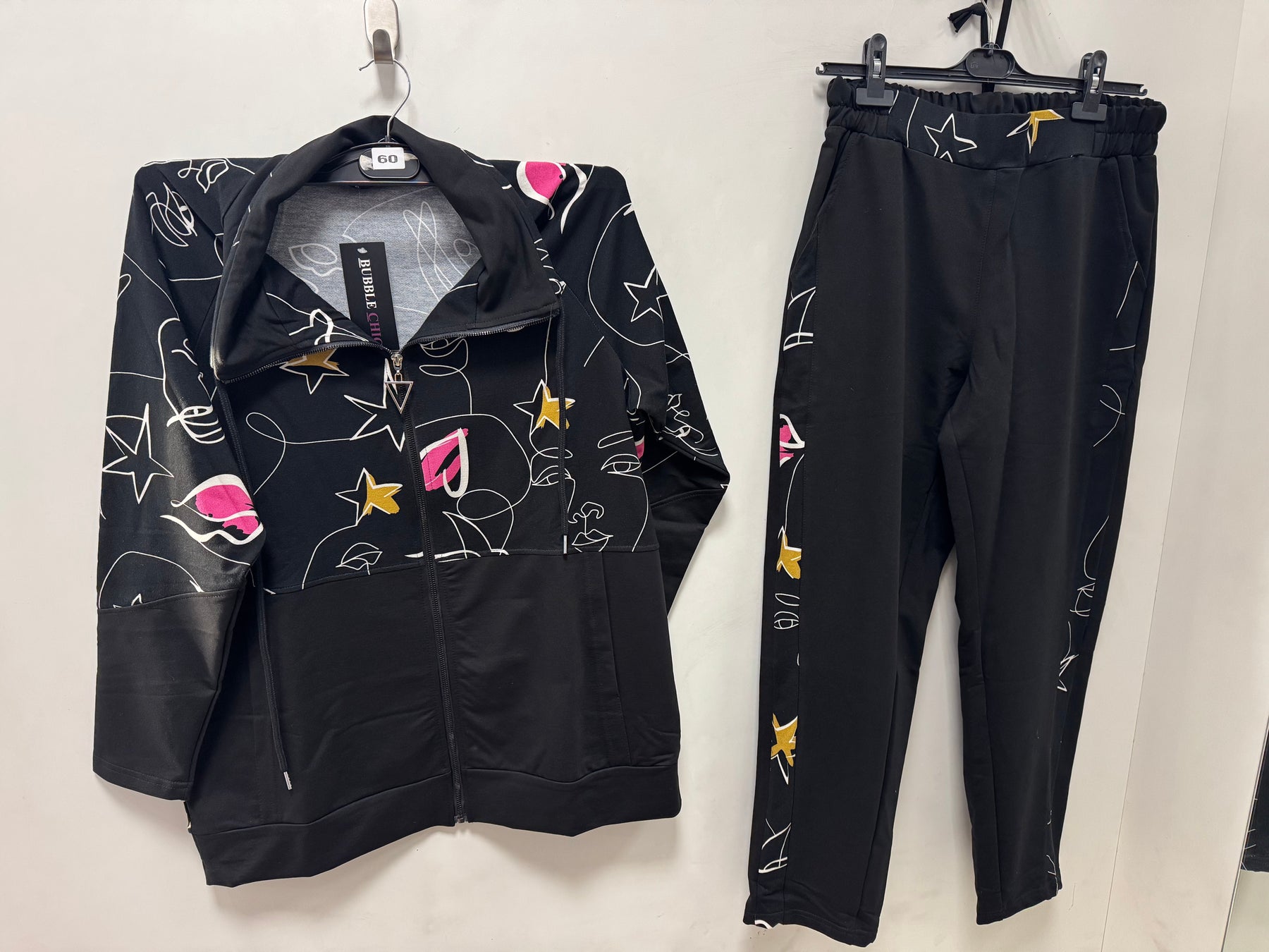 Partea imprimată a treningului este din 95% bumbac și 5% elastan