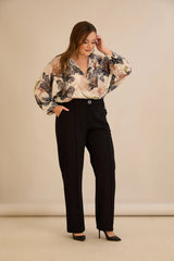 • Tunică unică din șifon, cu un accent frontal tip „cascadă” de paiete