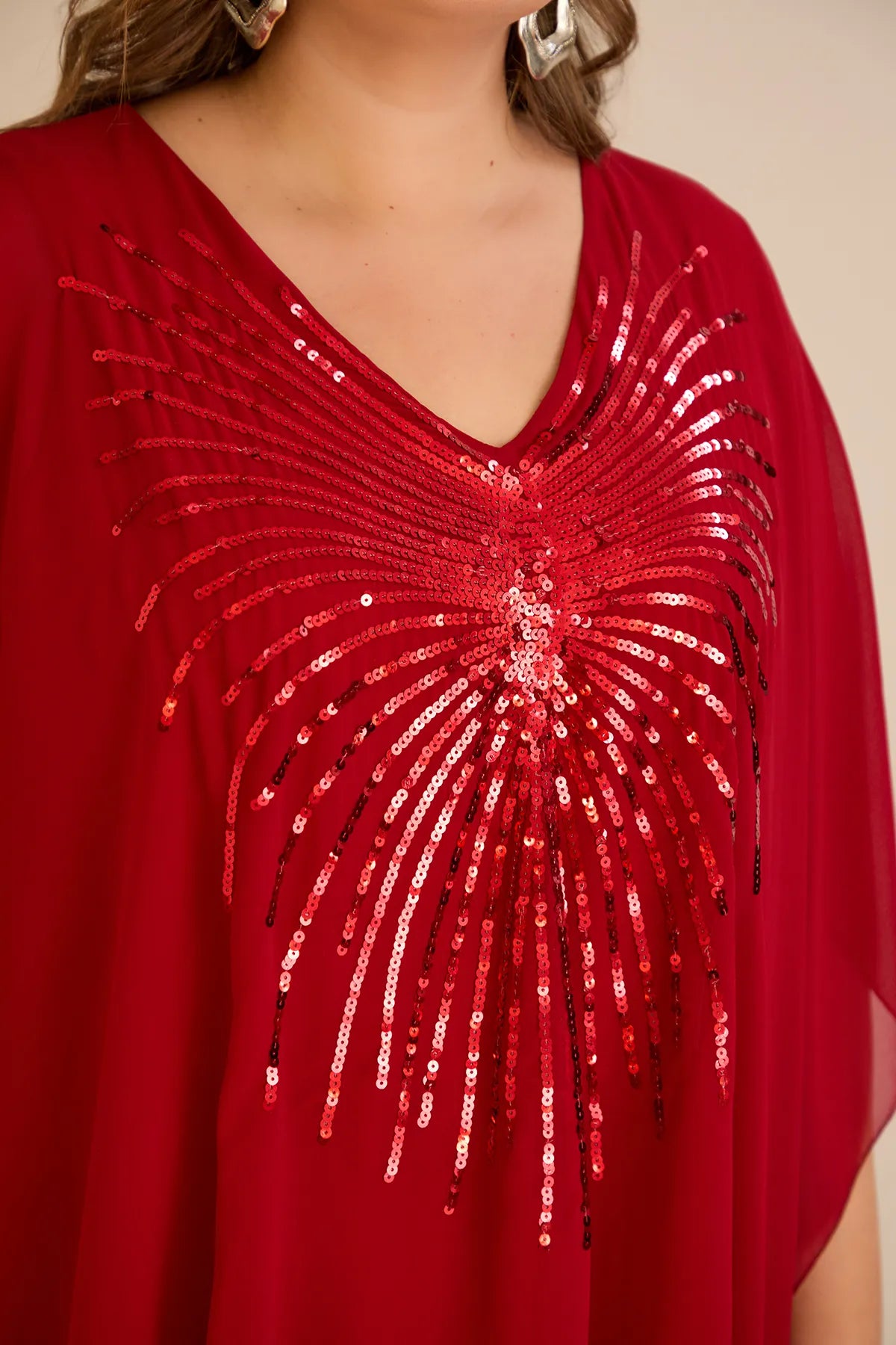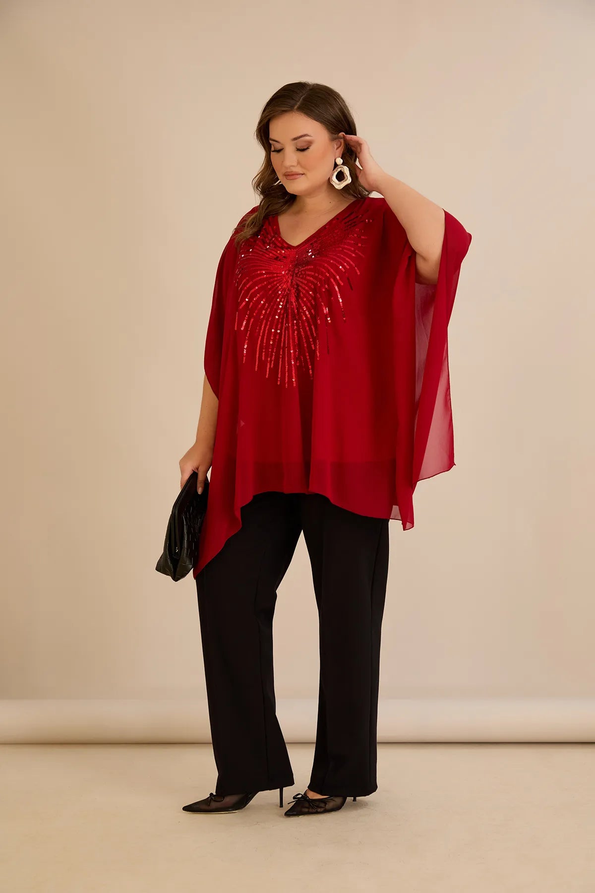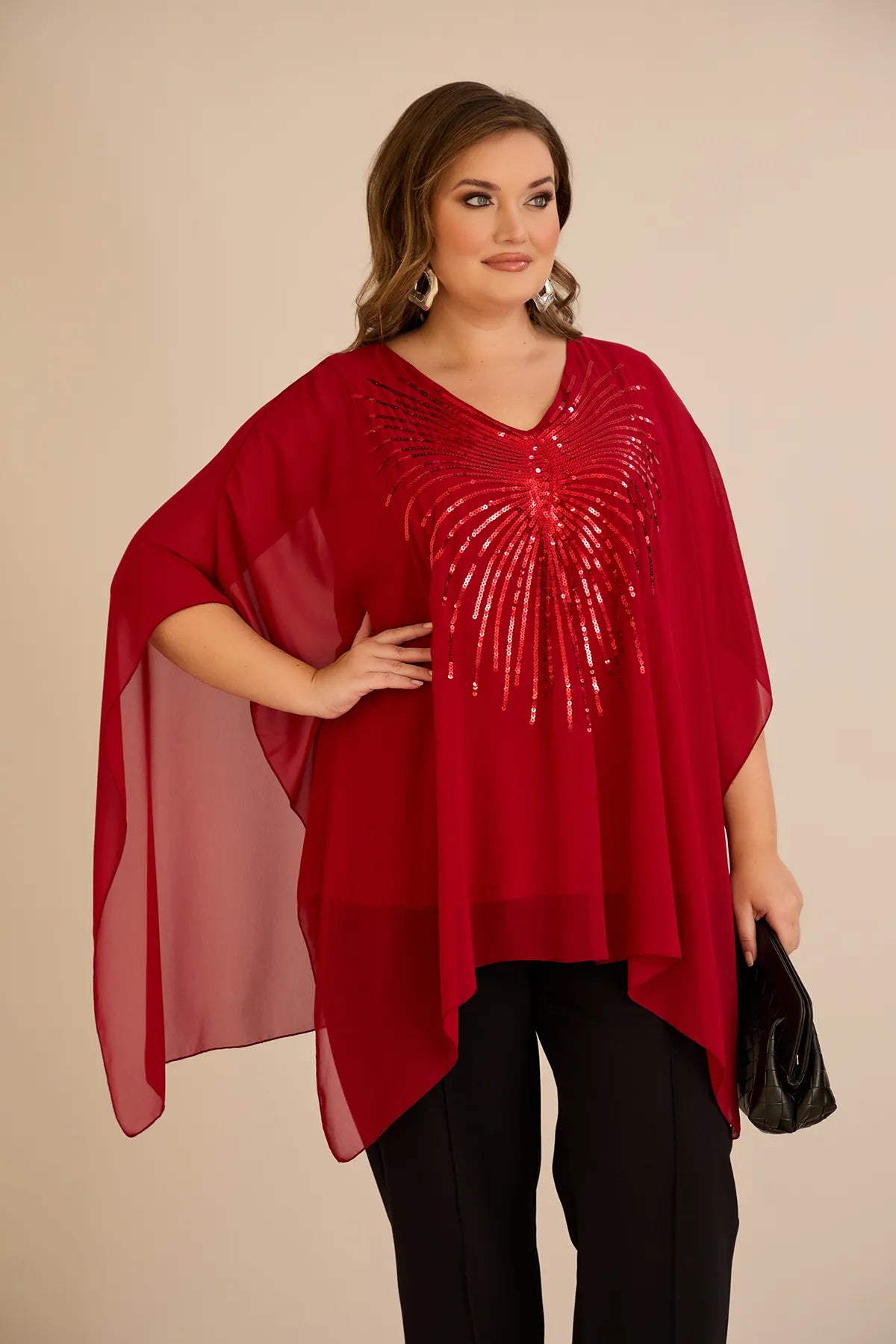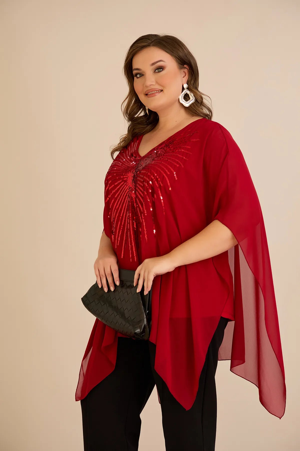Tunică festivă mărime mare cu accent din paiete și croială lejeră – roșu