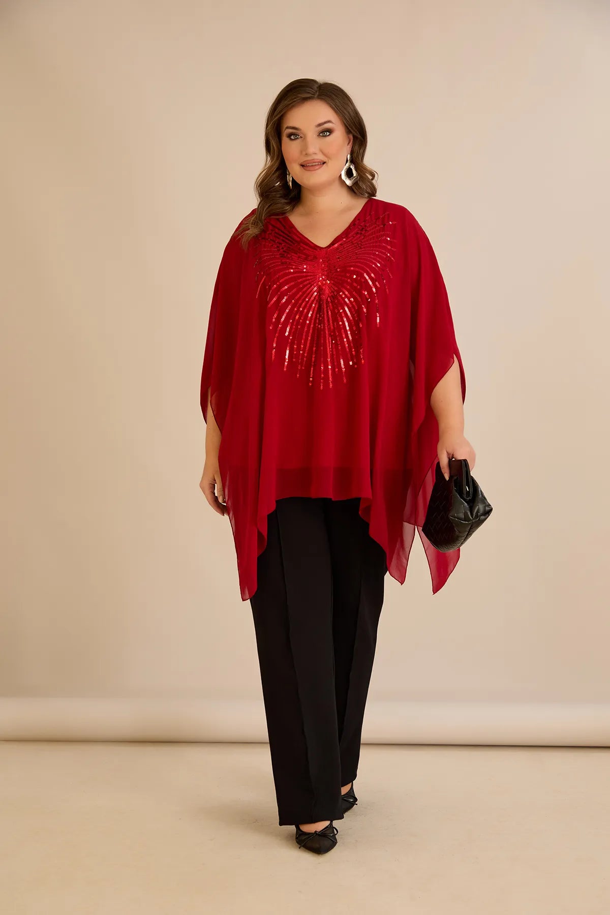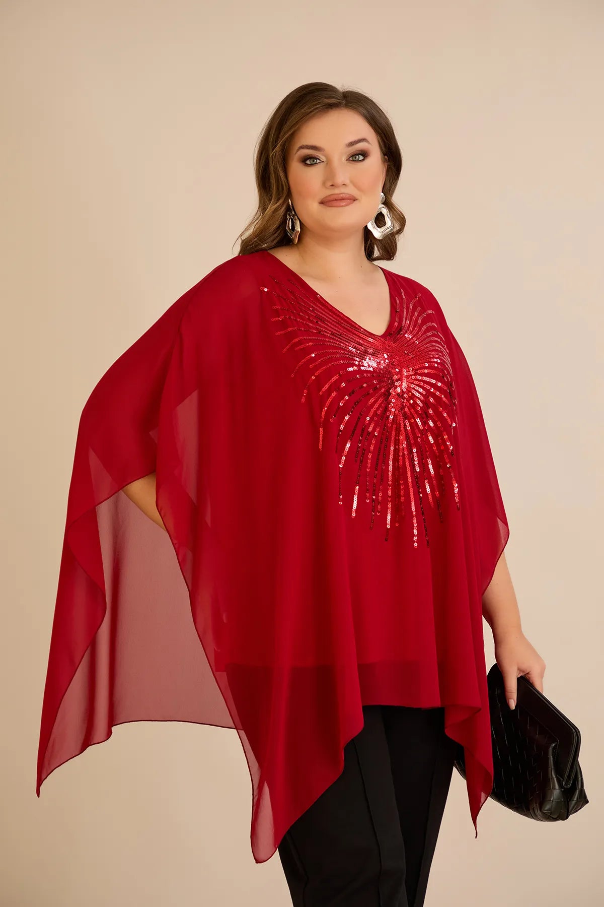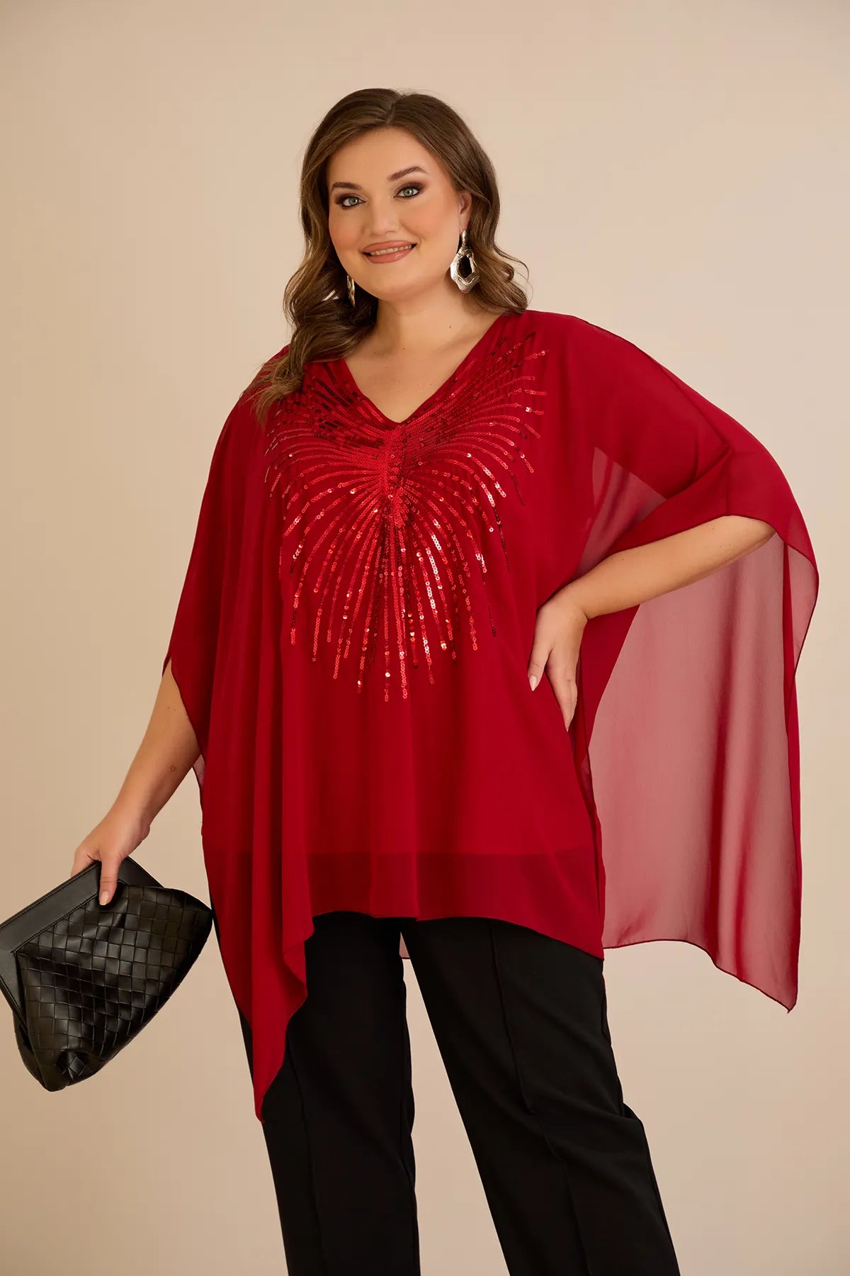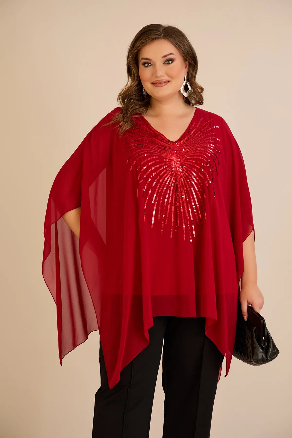 Tunică festivă mărime mare cu accent din paiete și croială lejeră – roșu