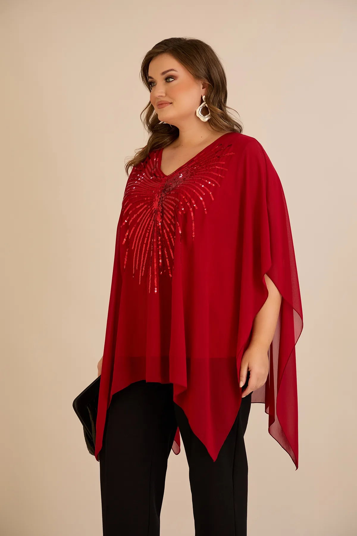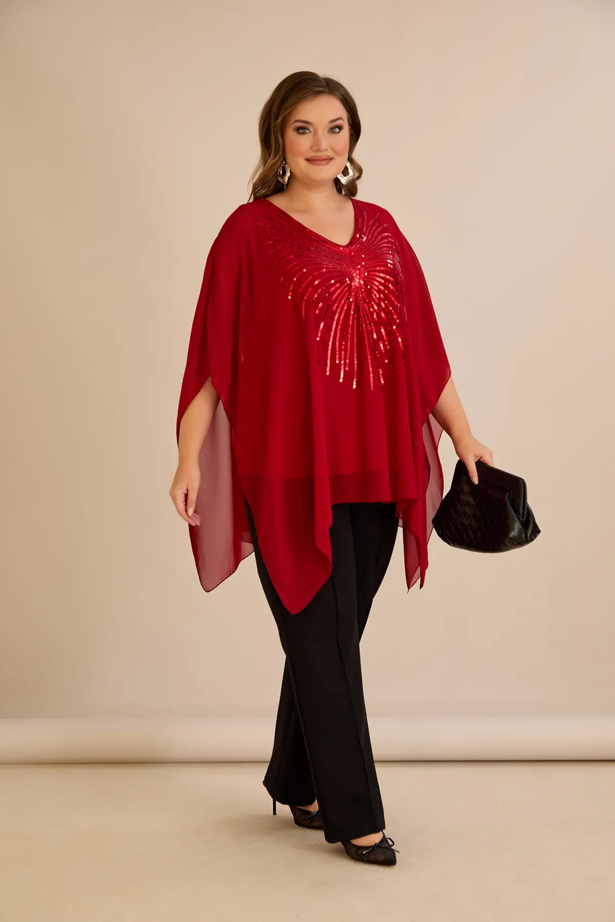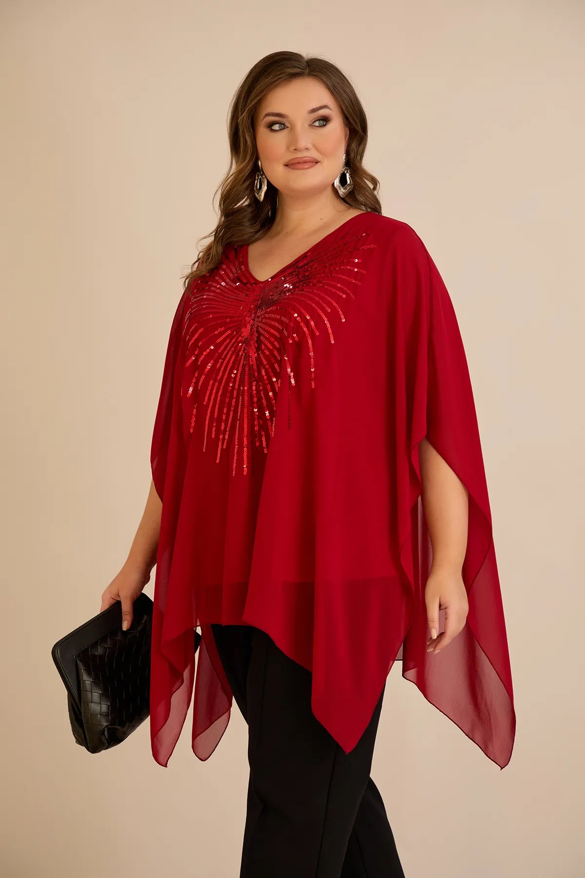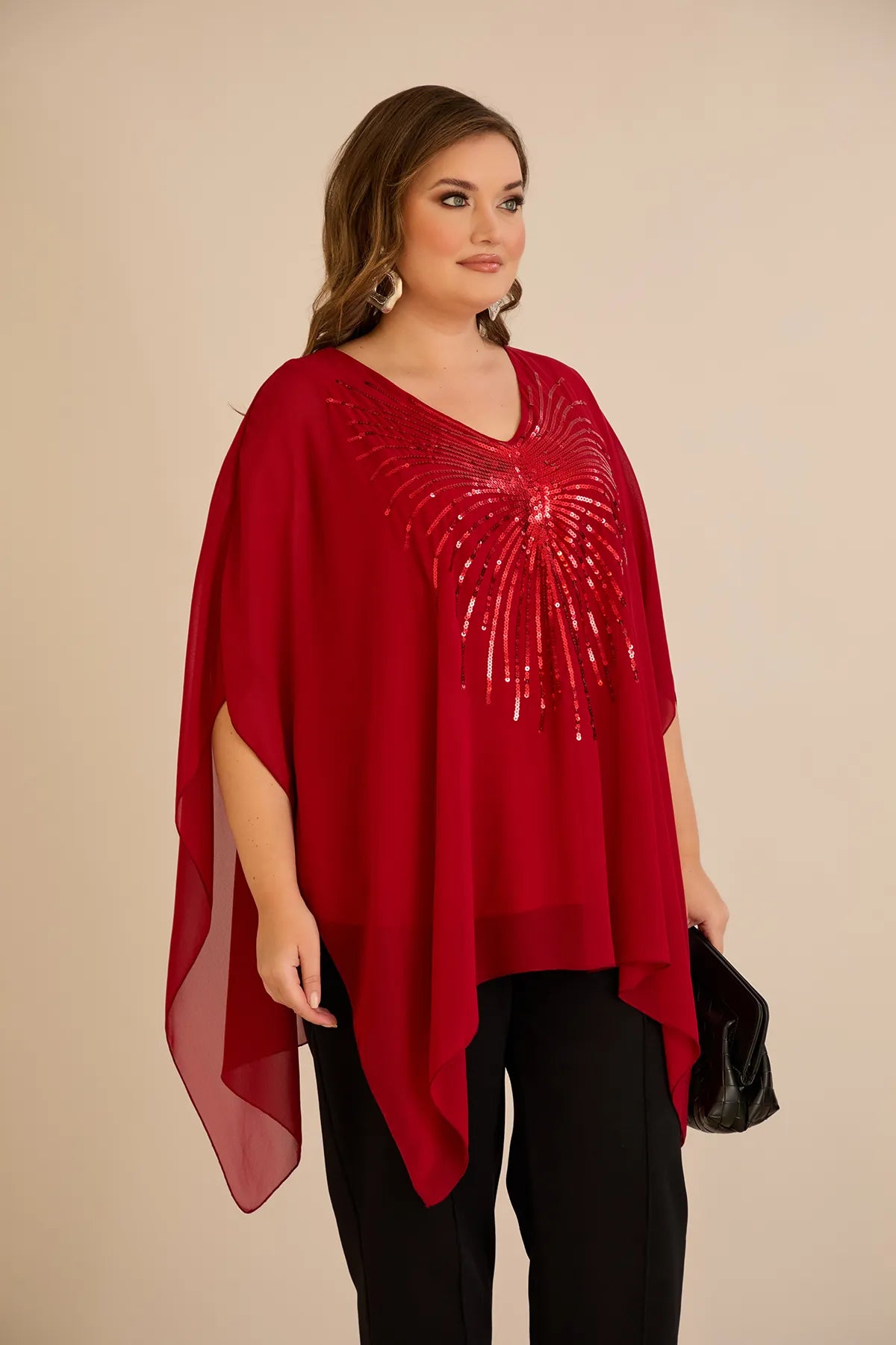 Tunică festivă mărime mare cu accent din paiete și croială lejeră – roșu