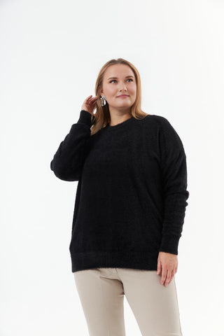 Vestă lungă cu blană de astrahan și glugă – vesta este disponibilă pe mărimi mari